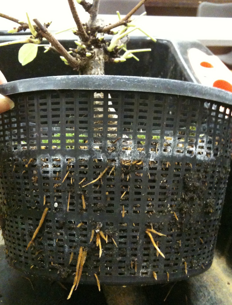 For any trees that you are not repotting still remove the top surface and re-top dress to remove any crusting on the surface to improve airflow and drainage down through the soil. Plus clean the pots of the trees if they have got green algae forming on them.