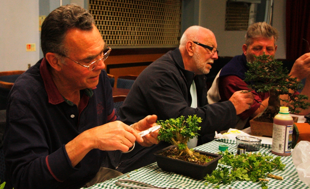 This months club night was a general workshop and it was well attended with many club members bringing in all sorts of trees to work on in various ways. Some were re-potting, some were pruning, styling and others designing, whilst some were happy to watch and learn.Here is a brief look at what some of the club members were working on as well as our tree of the month competition for April 2011 which was well supported.