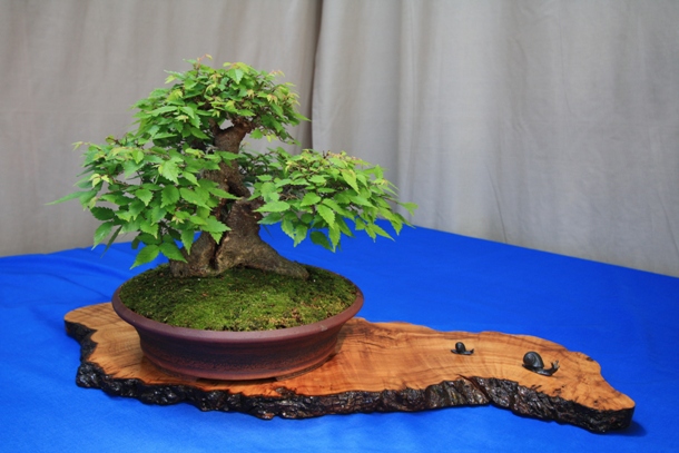 It was a well attended event and many trees were purchased by all including us. A wide variety of tree species were on sale included Japanese Black Pine, Siberian Elms, Mountain Maples, Itoigawa Junipers, Red Pines, Scots Pined, Blackthorns, Korean Hornbeams, Azaleas in full flower, a Dwarf Spruce, accents and Dwarf Willows to name a few. There was a great range of pots of all shapes and sizes from a range of Potters. The displays were of a good standard and in particular a mention must go out to the British Shohin Association display of which the majority bar one were John Armitage’s trees and these were exceptional.