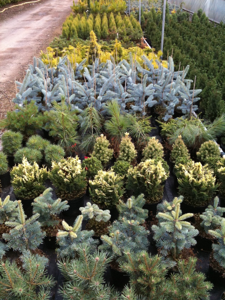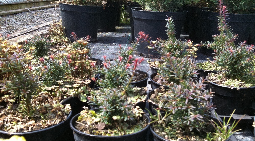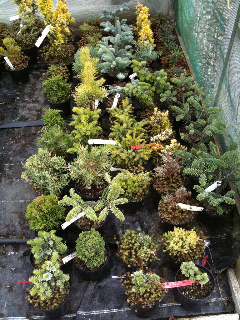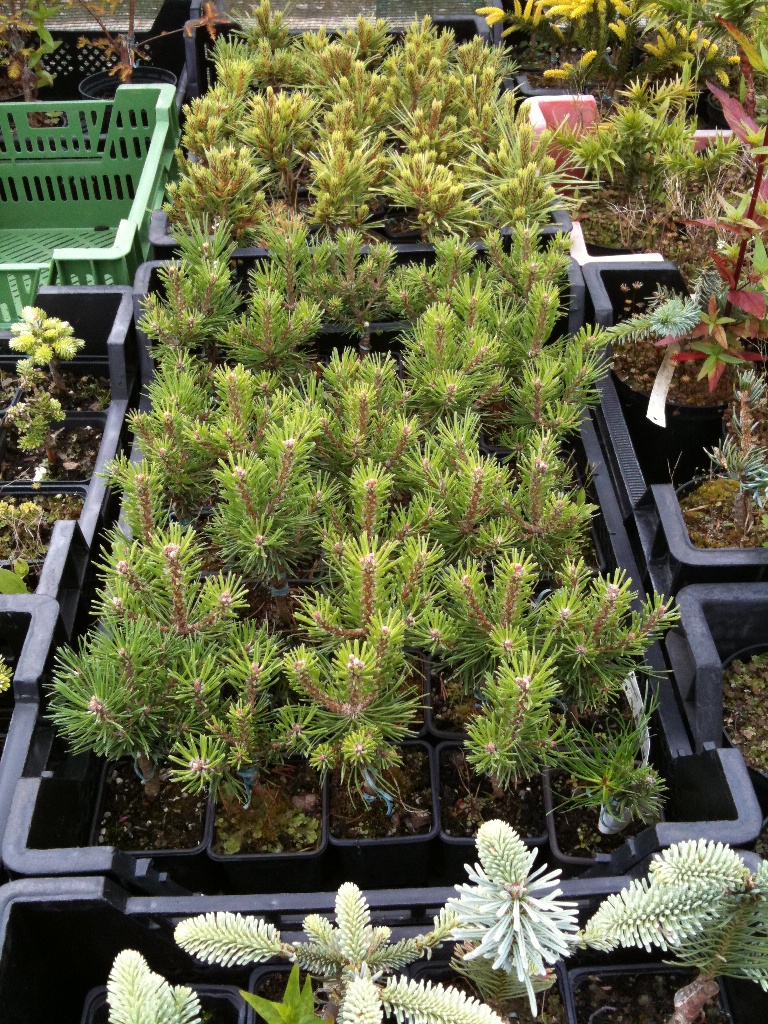 I was also pleased to find grafted Ginkgos and bought three new ones called ‘Everton’, ‘Jade Butterfly’ and ‘Mariken’. I also found a Picea abies ‘Doone Valley’ which is an extremely slow growing bush forming a minute bun of tightly congested growth. It is the most unrecognisable Spruce I have seen. A fun one which may make a great mame was Podocarpus nivalis ‘Red tip’ which has tiny leaves and is densely branched.