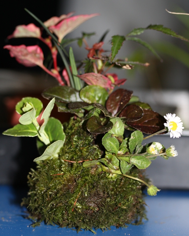 4. Kokedama = Moss balls (Koke =Moss and dama = Ball) made from Keto and moss and a plant and sat on a shallow dish to aid with moisture retention.