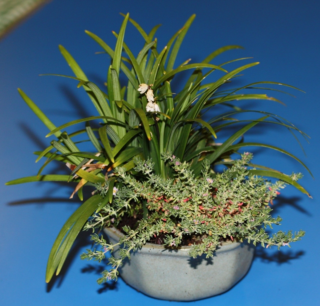Bonsai with flowers should not be displayed with Kusamono in flower but with grasses and moss.