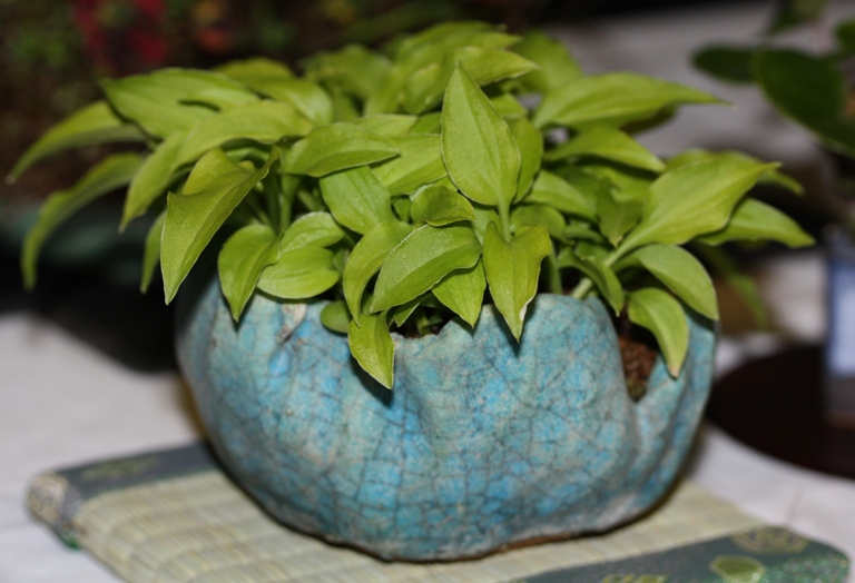Re-potting is crucial and this can be done in the growing season and this is particularly useful for Hosta’s which if cut back after flowering will push a second flush of leaves which will restore their fresh appearance. In terms of soil, use a normal bonsai mix or a combination of Kiryu and sieved Akadama. Aftercare is important and they should be kept moist but not over watered and kept warm and fed. They should be kept sheltered over winter and in particular with Hosta’s the leaves should be cut back and they overwinter like this.