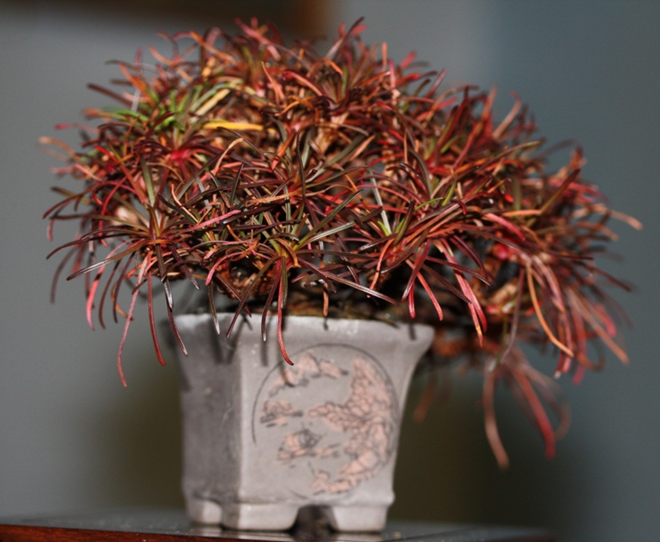 The origins were that these were originally small plants brought in with collected trees and then were grown separately. They often depicted the area from where the tree was collected and were usually in the form of wild flowers or grasses. Accents can be used in many ways, and come in many sizes and can be single plants or mixed plantings and used in Tokanoma’s or Shohin displays or as standalone displays in their own right and are widely used throughout Japan.