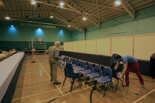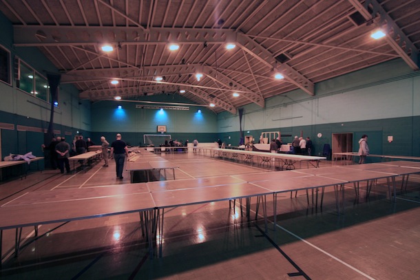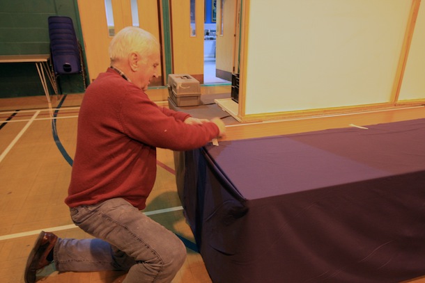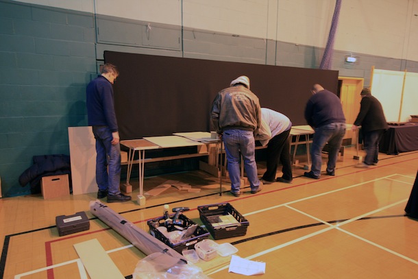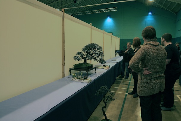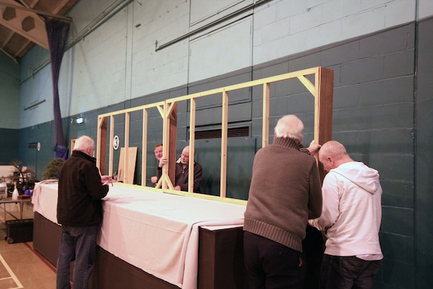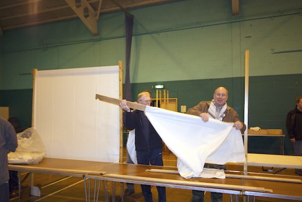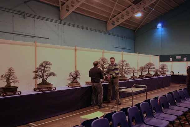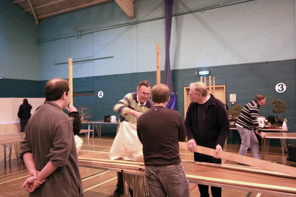 This is the view on the night before our 10th Anniversary Swindon and District Bonsai Society Winter Image Show for 2012 when we started the set up in anticipation of the big day ahead. It was a busy evening of building, carrying, moving, lifting, unrolling and shuffling by all who helped out and it is no mean feat to set up all the tables and screens and put out all the chairs the night before in only around 3 hours. Some of the visiting clubs and societies and traders were also present and put up their displays ready for the next day too. Here is a little sample of some of the nights activity.