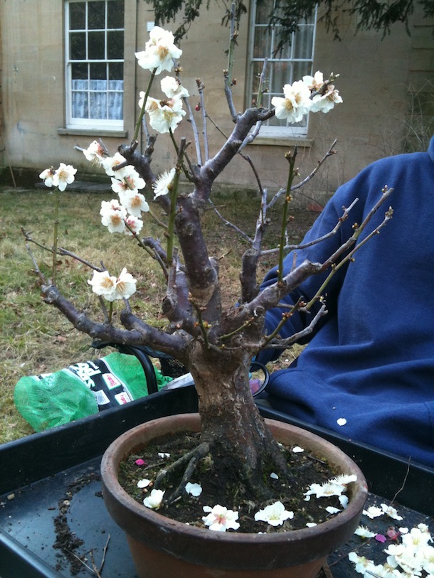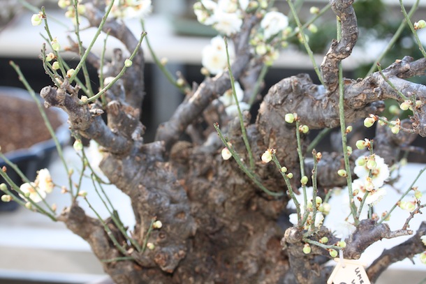 Prunus mume (Japanese apricot or Chinese Plum) is often over looked, not just as a bonsai but as a plant or tree in the UK. This is one of my favourite times of year. The annual winter show has been and gone and everyone is busy repotting for the upcoming season. This is a frantic time of activity as the days start to get lighter again. I really appreciate when I open the door to the greenhouse, the potent smell of my Prunus mume in full bloom, as it rushes on its way outside. Also known as the Japanese Apricot tree, flowers can come in pink, white or even red variations and have an almond sweet smell. This, I know as so many good things do, lasts for a short time. Here are a few images of examples of Prunus mume I have seen or own.