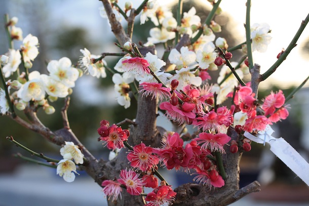 - Pink and white flowers on same tree of Prunus mume