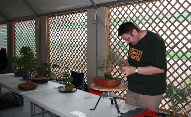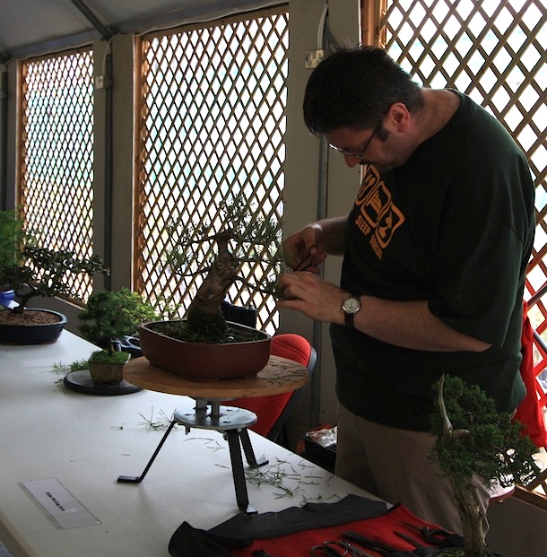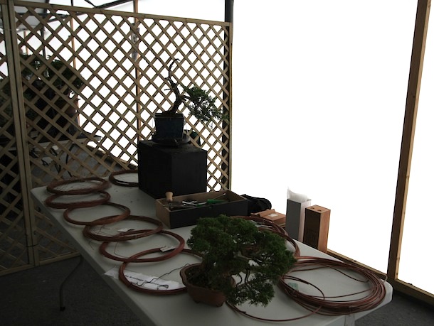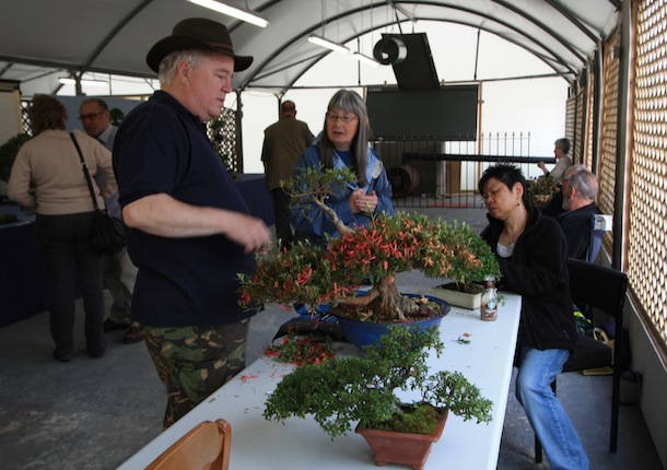 Newbury and District Bonsai Society hosted a bonsai show at Roots Garden Centre off Priors Court Road near hermitage today and it was a very good event. We exhibited at the show along with other local clubs and societies including Warminster Bonsai Club, New Dawn Bonsai, Chiltern Bonsai Society, Eastleigh Bonsai Society, Wessex Bonsai Society and Solent Bonsai Society. Lee Verhorevoort Bonsai and Dai-ichi Bonsai and Satsuki Centre and David Sampson were selling a range of bonsai goods including trees, pots and stands. John Armitage provided a demonstration throughout the day on a juniper and was available for advice on styling and pruning. Throughout the show area there were various working areas for club members to work on their trees to aid with demonstrating their pruning and styling for others to see and watch. Here is a selection of images from the day and it was an excellent venue with good facilities and food was available all day and delicious.