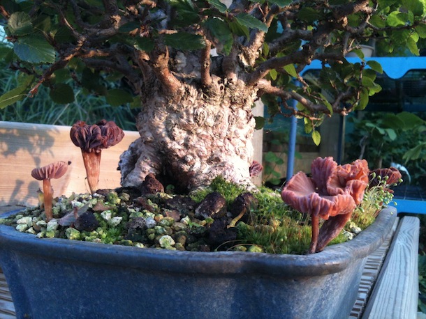 Recently I noticed some fungi show up on my Korean Hornbeam bonsai and I assumed they were a form of mycorrhiza fungi but was not 100% certain and whilst I was at the Arboricultural Association Conference at Reading I went to a great lecture by Ted Green who was discussing and sharing his ideas on mycorrhiza associations with tree roots.