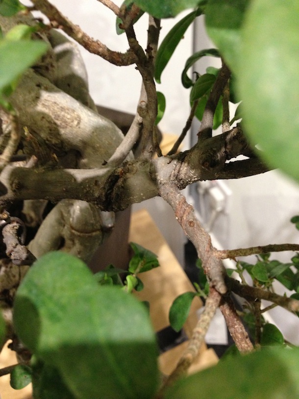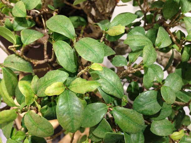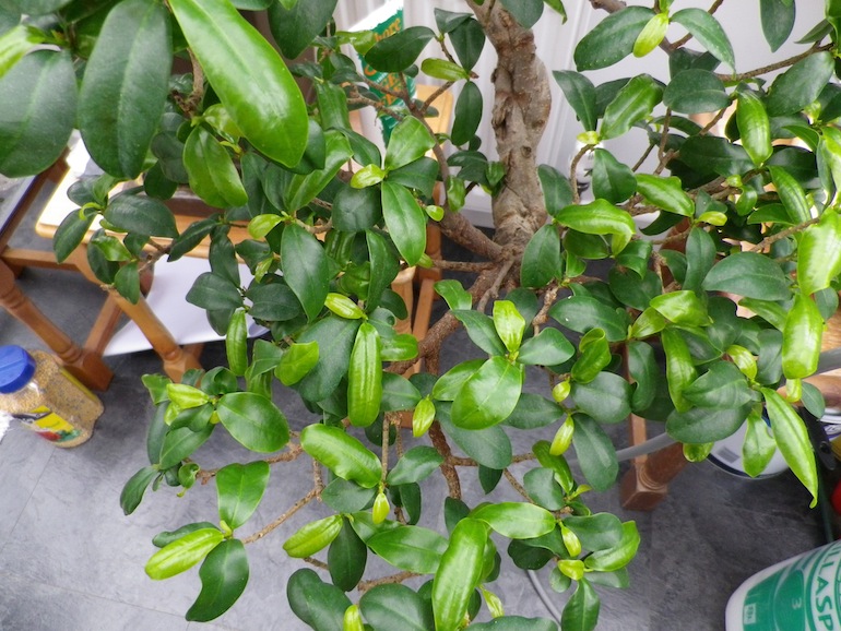 Here are some images of the Fig before I began working on it, it’s leaves had a rusty coloration occurring and upon closer inspection it looked like an infestation of white aphids on the underside of the leaves across all leaves.