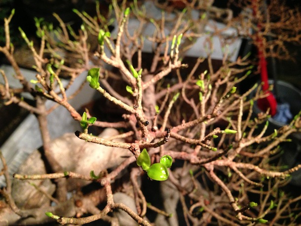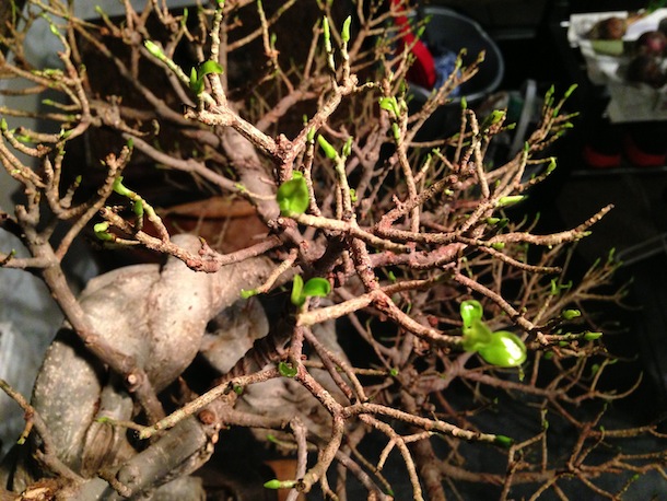 I carried this out in November 2012 when I received the Fig and I can happily say that it is responding well and new leaves are now forming from the buds and they currently appear bright green and healthy and this has occurred within a month since defoliation. I have started to feed the Fig again since the leaves are flushing. It has been watered every other day but only small amounts until it comes back into full leaf. It has been kept in a warm conservatory at a temperature of around 15 to 19 degrees Celsius.
