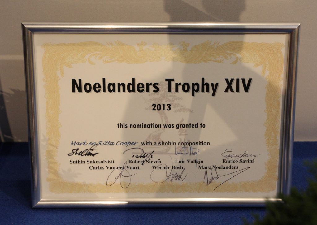 Congratulations to Mark & Ritta Cooper for their success at this year’s Noelanders Bonsai Show. They collected a First prize Shohin Award, a Nomination as well as a BCI Award of Excellence Medal for their six tree shohin composition. Out of one-hundred and eight exhibits, they were the only UK exhibitors to win an award. A well deserved achievement for excellent displays.