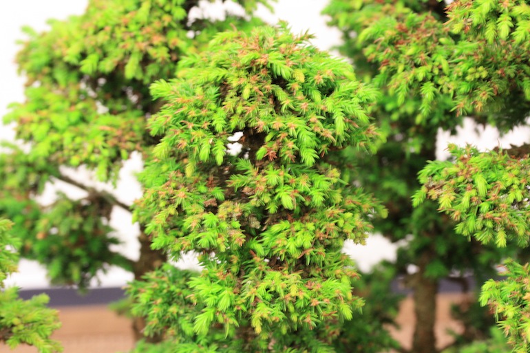 They can be used in a range of bonsai styles including groups, formal and informal uprights, root over rock or clasped to a rock, and twin trunk. Pruning the foliage can be achieved through pinching but some have found this does not leave dead browning tips as opposed to pruning with scissors but if this is done back to the correct growth point it can be more effective than pinching. Feed them heavily during spring through summer as this will aid the growth and development especially with the slower growing cultivars and light feed during the autumn and allow to rest for a few months prior to starting feeding more heavily in spring again.