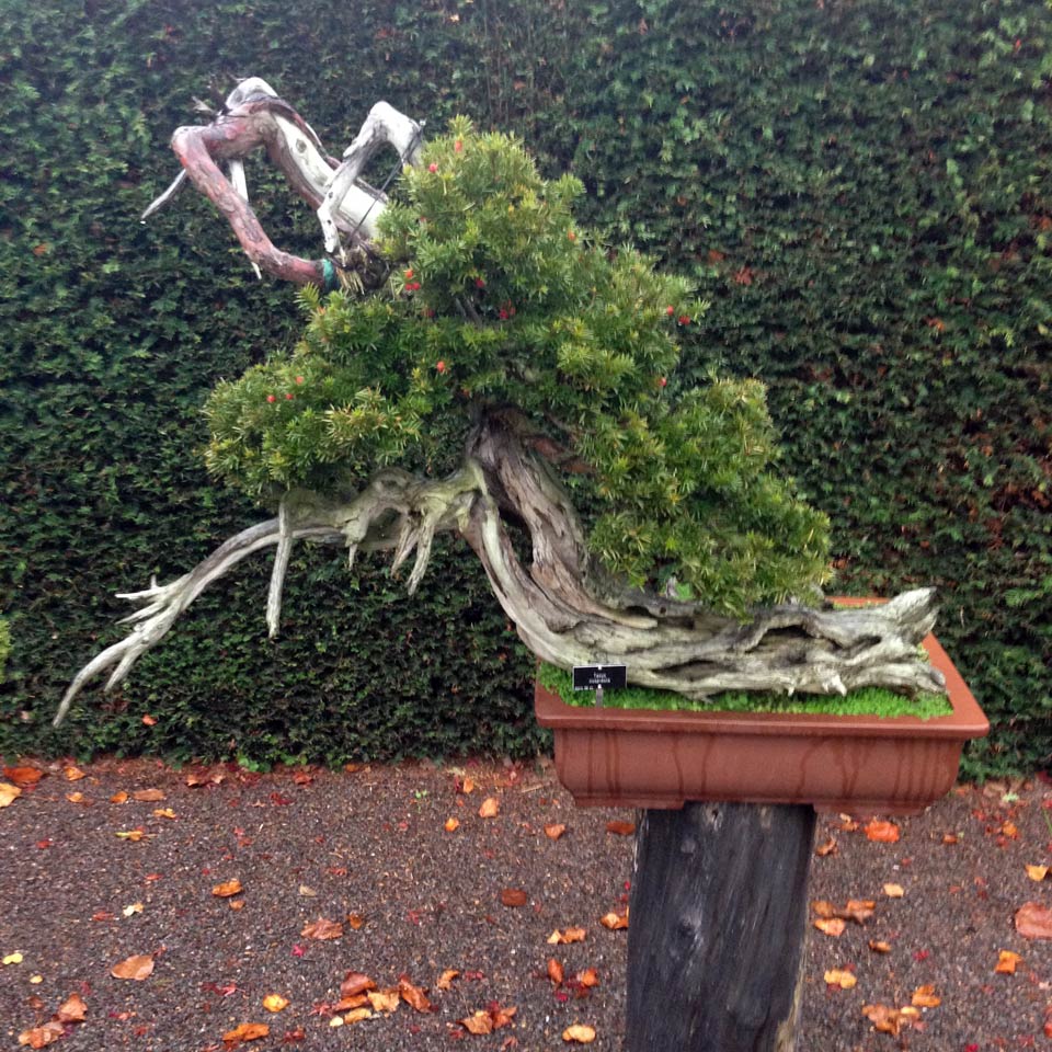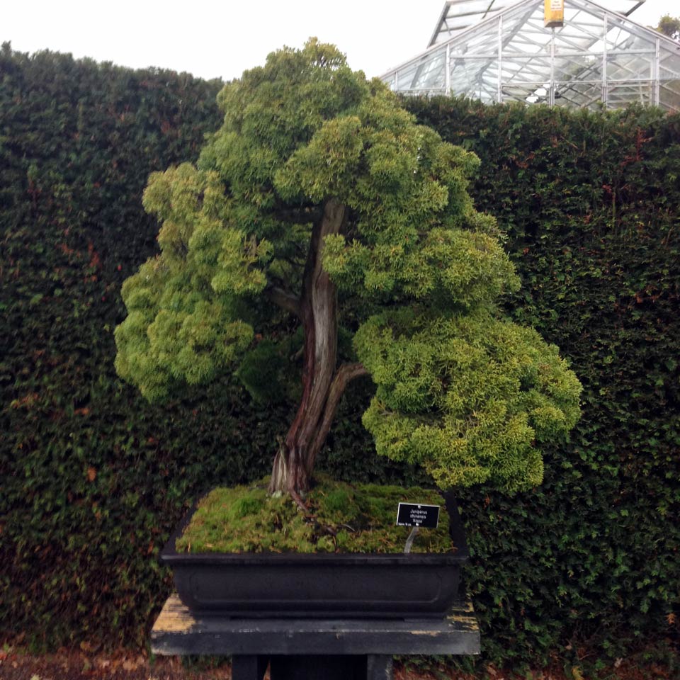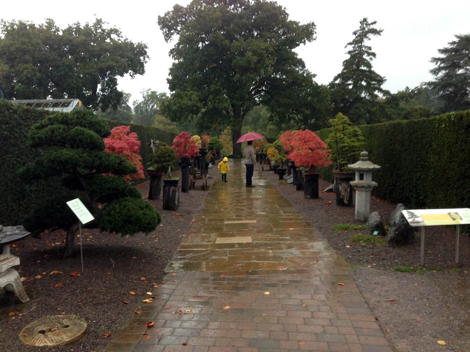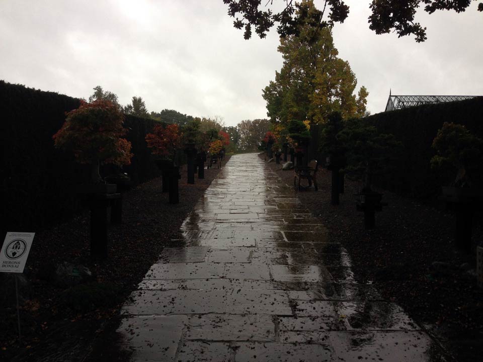 We decided to revisit the gardens at RHS Wisley today, the Glasshouse has an exceptional quantity and variety of plants. Also, we were surprised to see the Bonsai garden has been rebuilt, sponsored by Dawn and Peter Chan of Herons Bonsai. The layout is now much simpler, with paving stones, gravel and a few japanese garden accoutrements in the mix. You will have to excuse the poor quality of photography due to the overwhelming amount of precipitation we recieved.