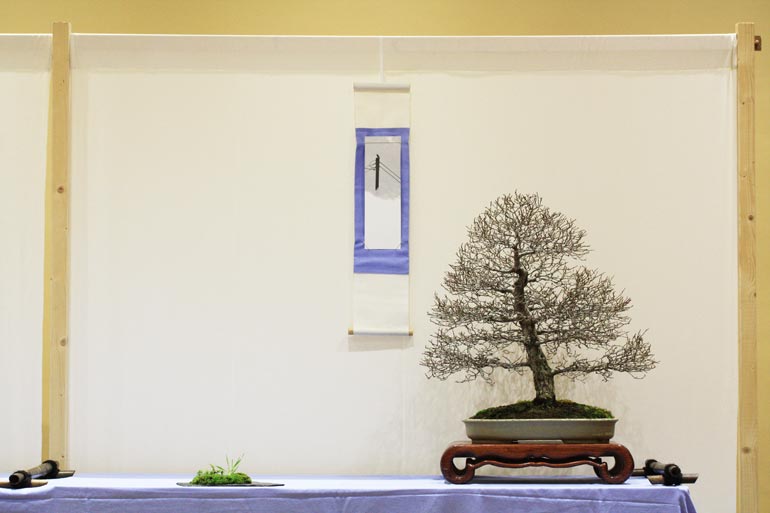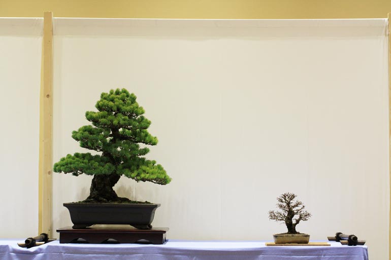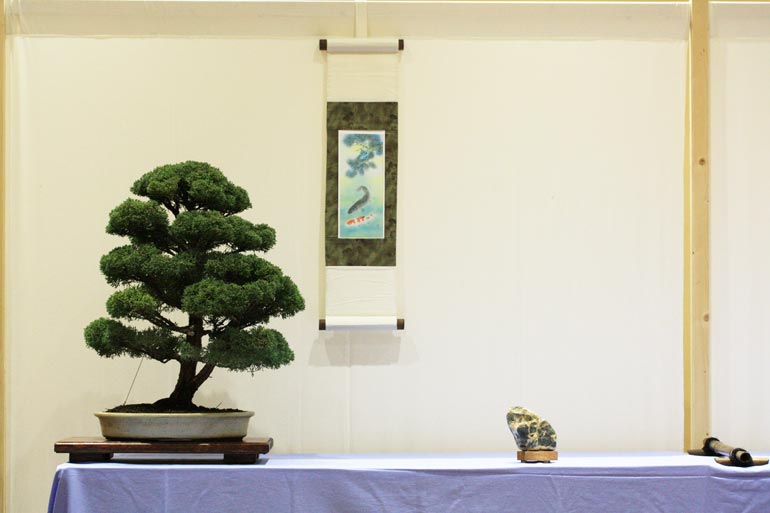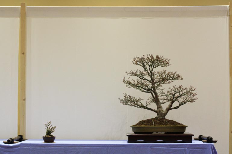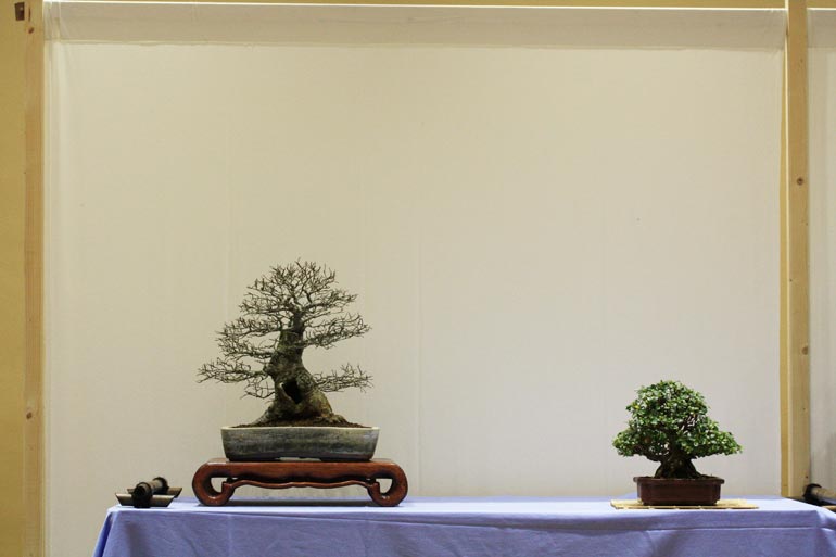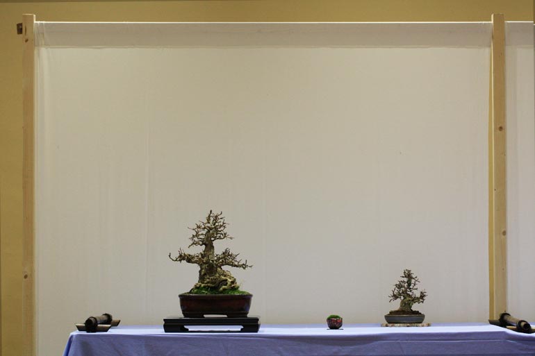 This week, we’ve been designing displays for our upcoming winter show. Setting trees up in this way really makes you take note of the good points, but also the areas for improvement. Starting with a 6ft table each (the keener eyes amongst you will observe the tables pictured are just over 5ft) dependant on the size of treeĀ balancing the space can be tricky, therefore it is a good idea to do a trial run to see what works, and what doesn’t. Accompanying items can vary in quantity and size as well as type, these could be companion trees, accents, scrolls, rocks/suiseki, bronzes or anything else that could make a compelling display. The conversations that ensue on these nights are always good fun.