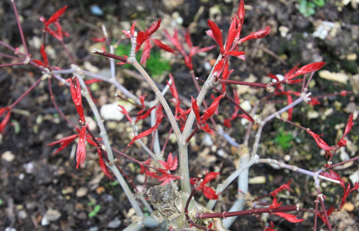 Prior to the full onset of Spring repotting should have taken place to root prune the trees and check the composition of the soil plus look for soil pests and replace the soil as necessary and add any additional nutrients. The most common repotting months for bonsai are around February to March but depending on your trees and their development this may vary for you.