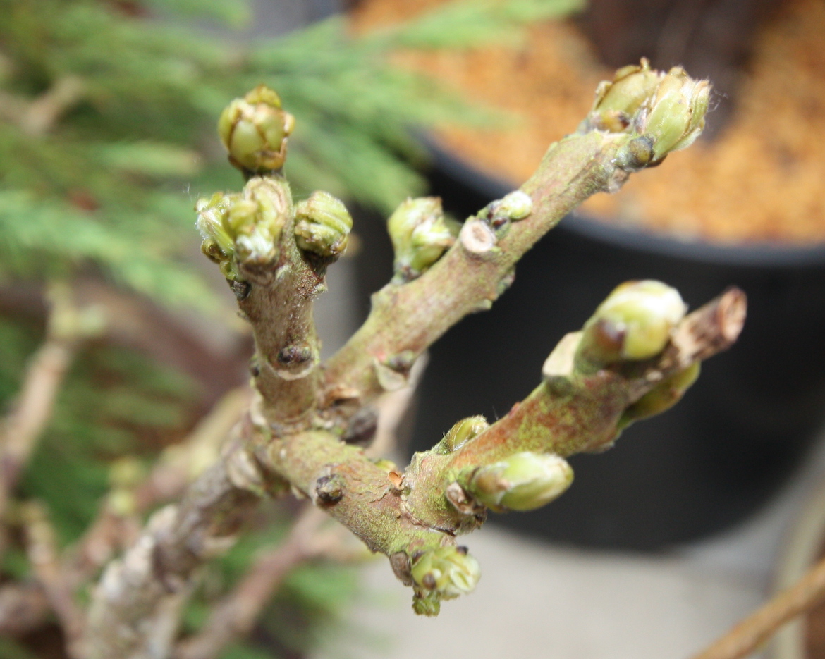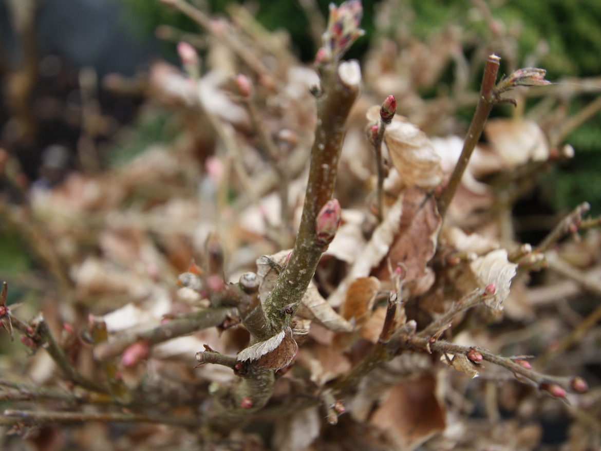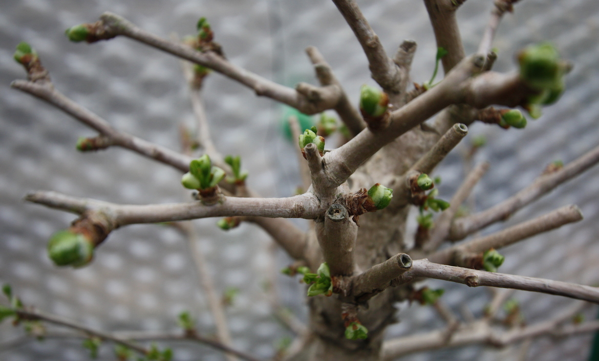 For example if you keep your bonsai trees in a green house over winter they will tend to come into leaf earlier than someone who keeps their trees outside all winter. However, as this winter has been so mild this may not have induced a deep dormancy for the trees so they may come into leaf sooner.