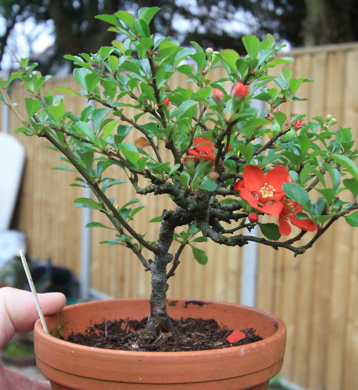 Quince (Chaenomeles) originate from China and Japan and they are a common ornamental shrub which is used as a bonsai due to the showy flowers that bloom in Spring. There are a wide range of cultivars to choose from and the most commonly used as a bonsai is Chaenomeles speciosa.