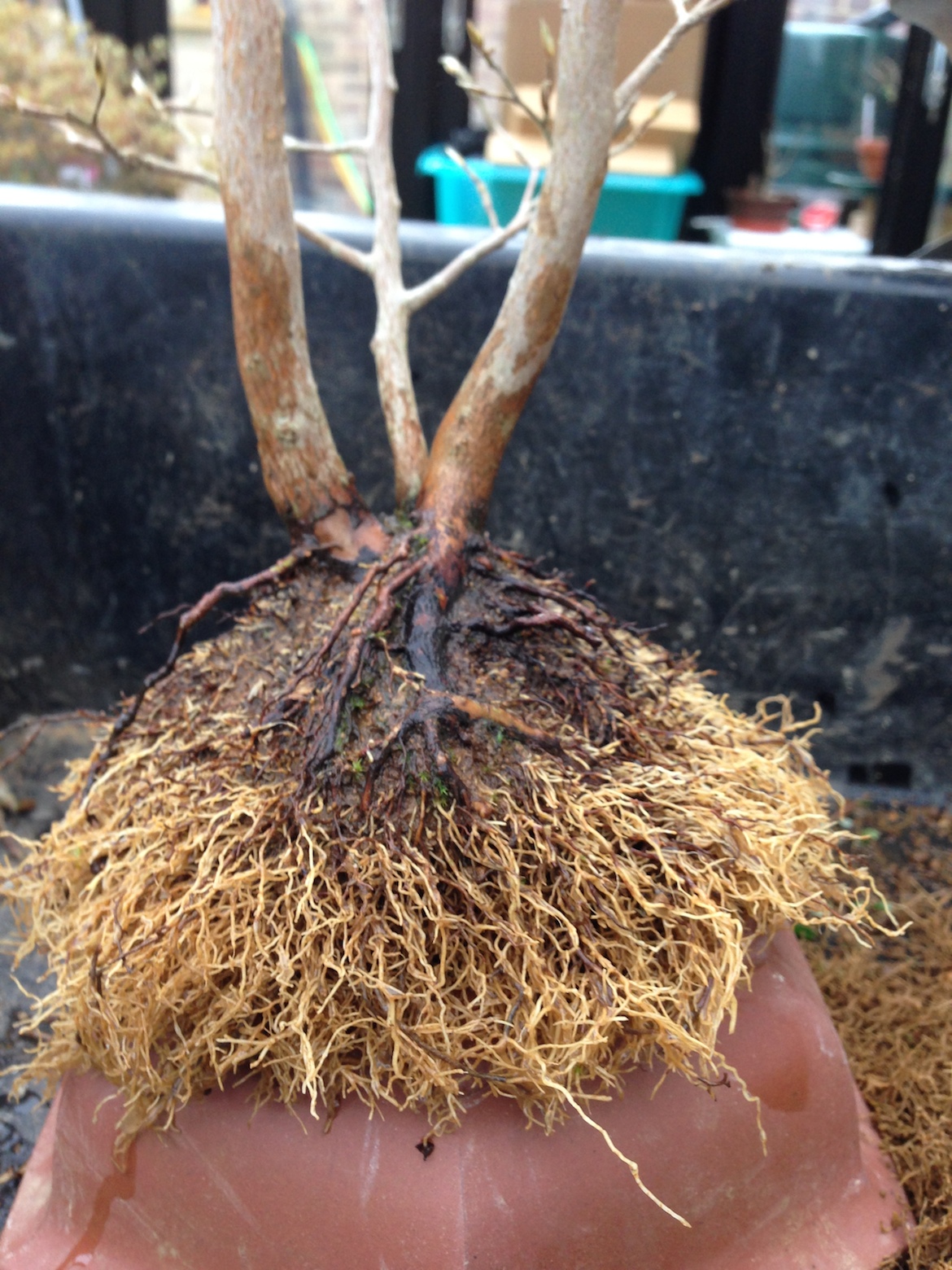 - 3rd repot of Stewartia and good fibrous root plate had developed
