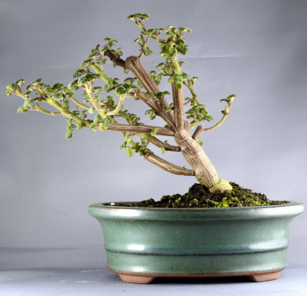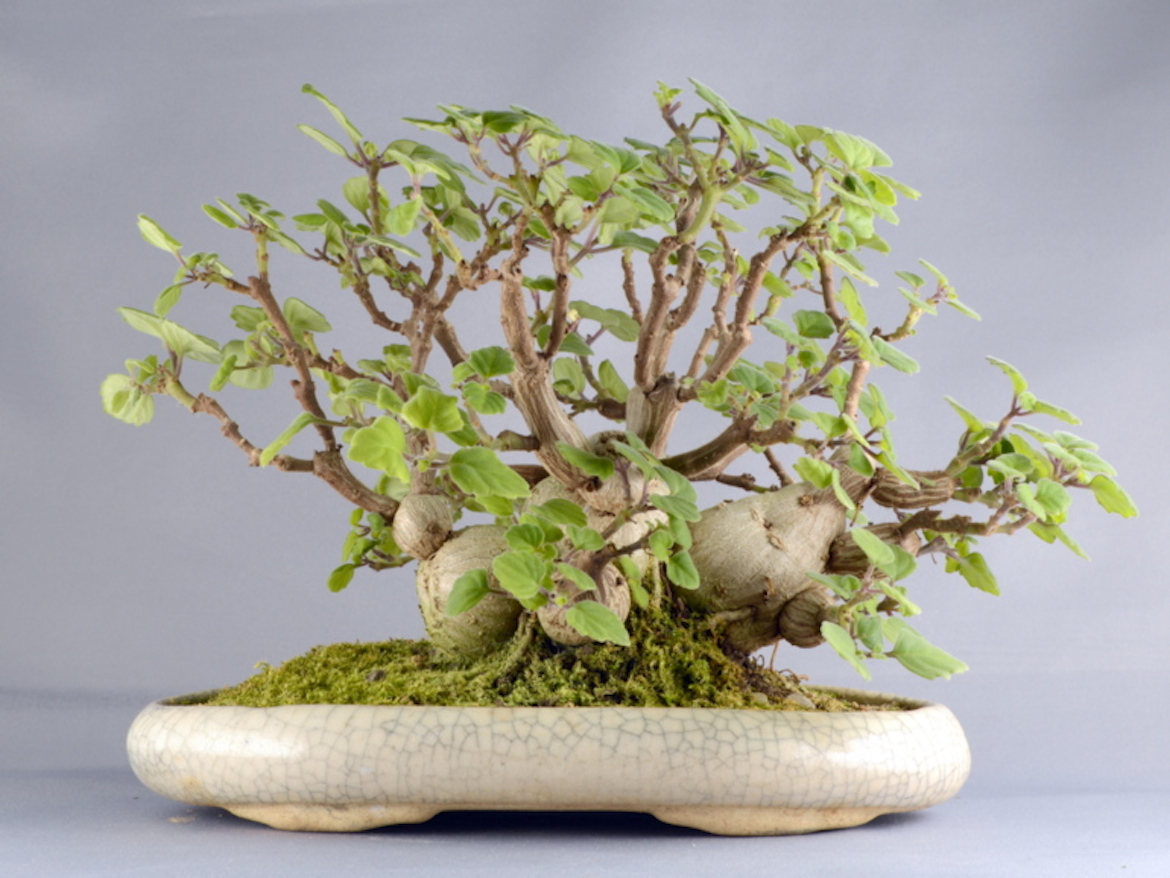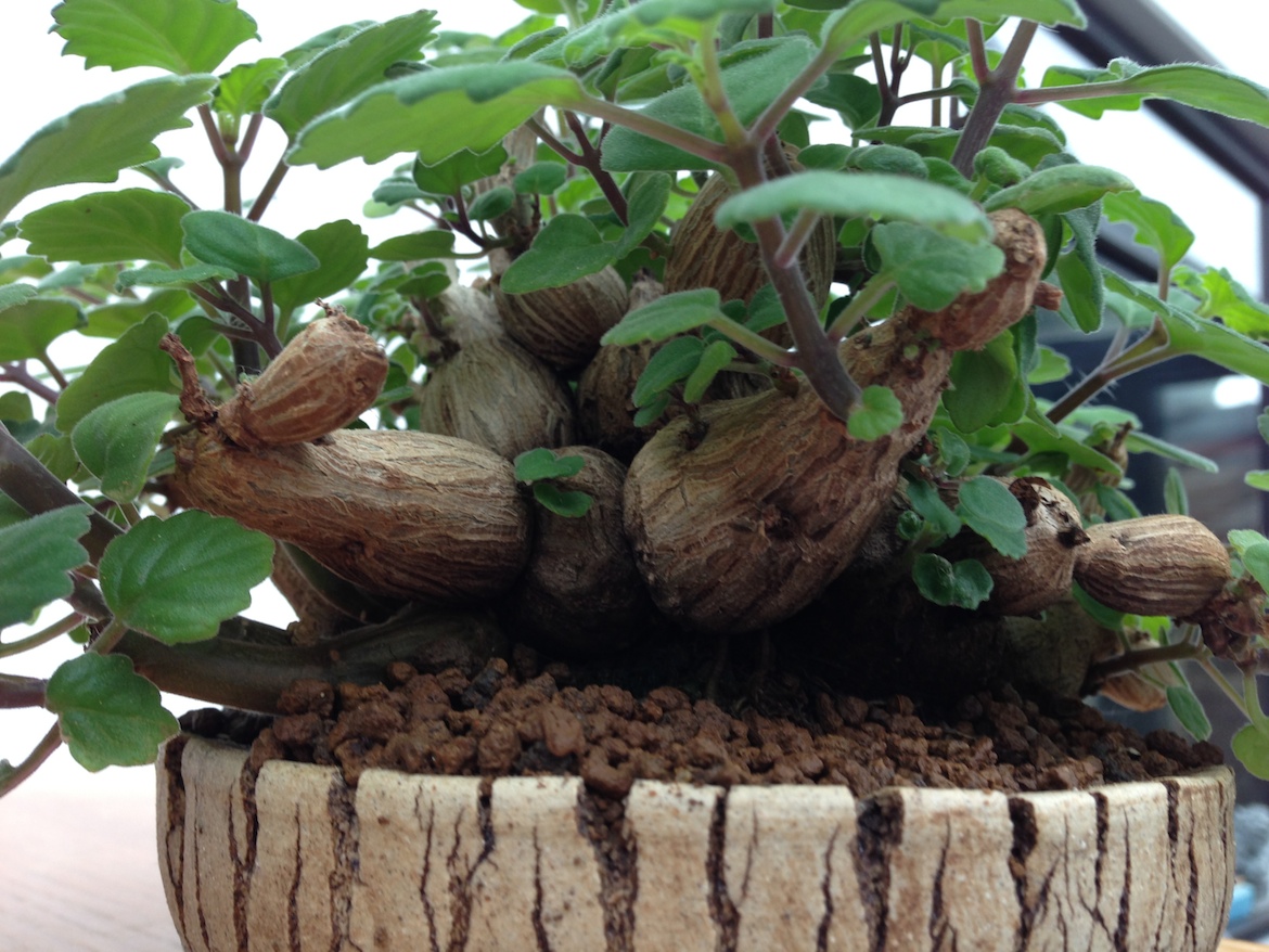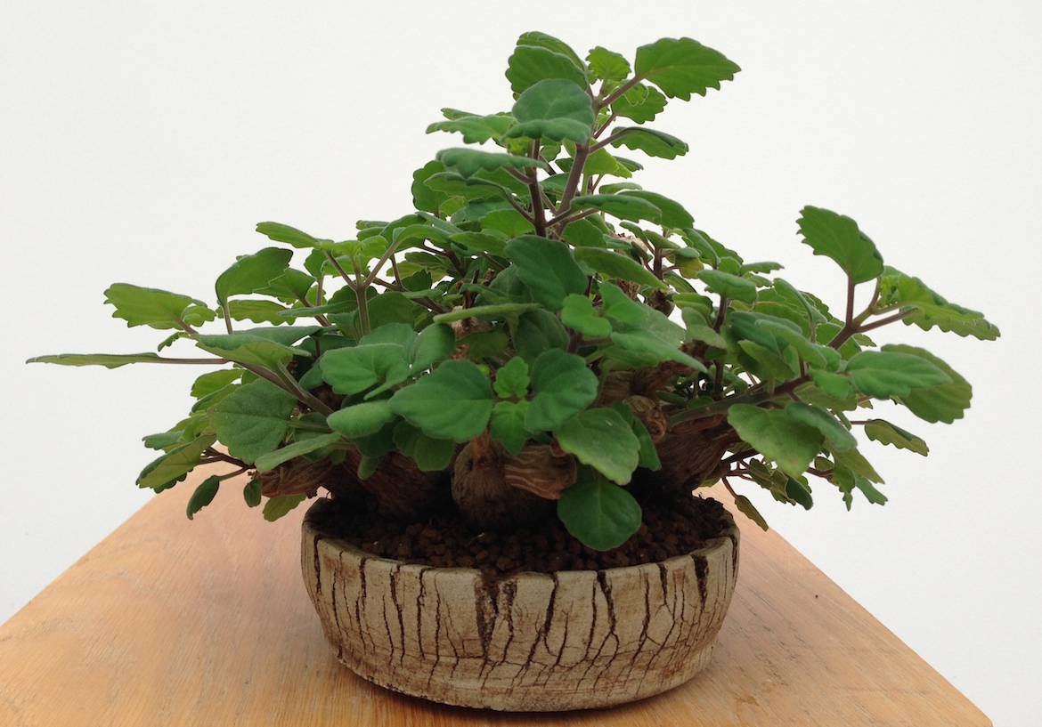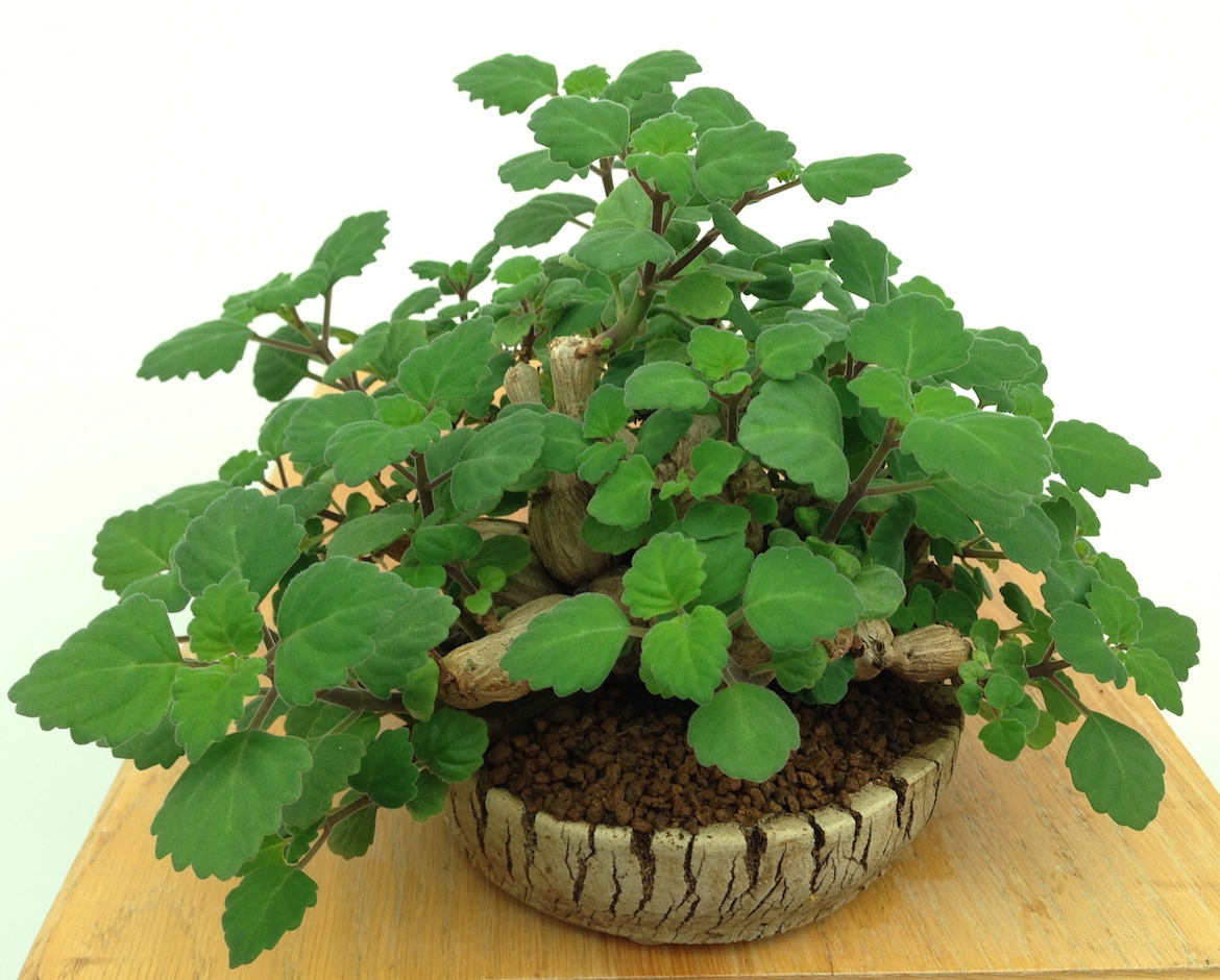 The most common species used in bonsai is Plectranthus ernstii otherwise known as Bonsai mint or Bonsai spur flower as this has a fun striation to the bark of the caudex which fatten quickly with watering during the Summer months. However, be careful not to overwater as they can split if they grow too quickly plus excess watering can lead to root rot. The leaves are aromatic and they have small blue to purple flowers off a spike which bloom from late Spring through to Autumn. They do grow fairly slowly and are perennials and if grown as a bonsai still ensure to feed with a balanced fertiliser as this aids in maintaining a good leaf colour.