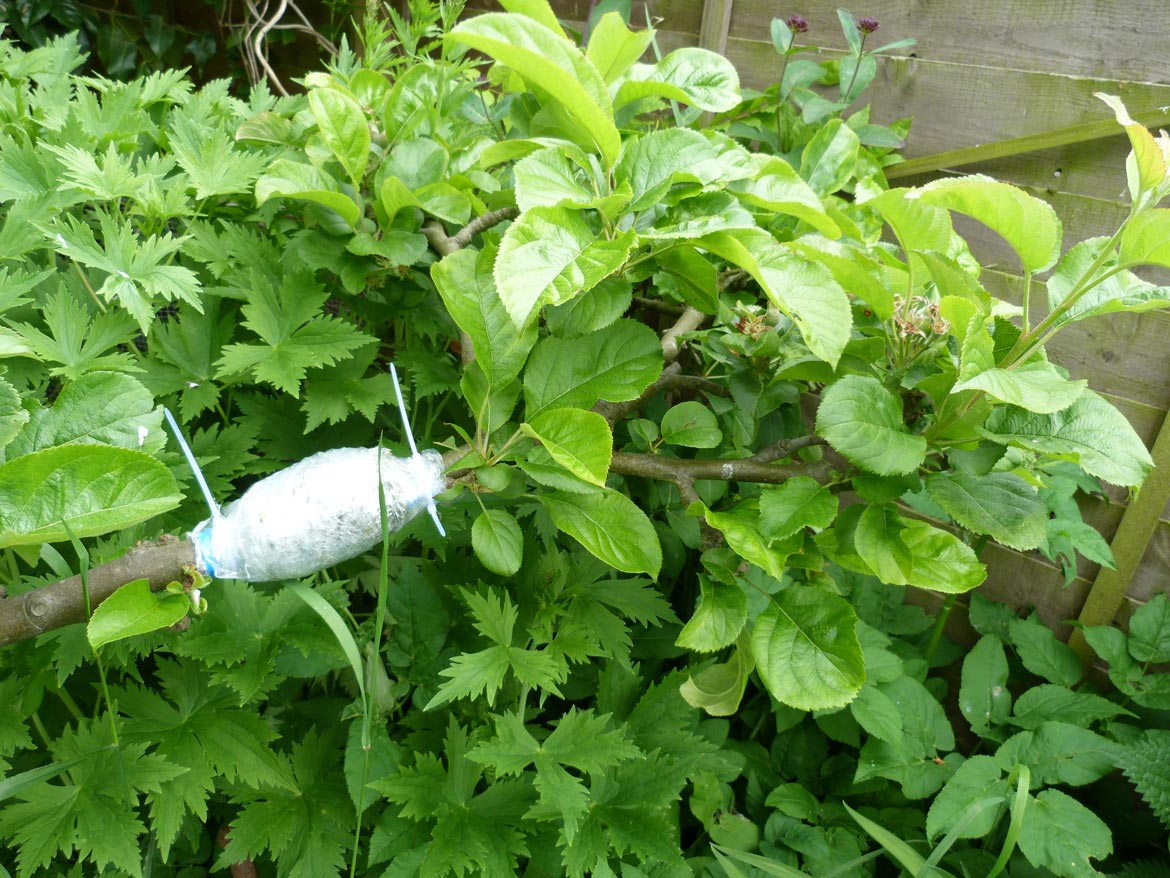 The air layer was checked regularly for signs of roots and by August roots were visible and the air layer was separated by cutting it off from the original Apple tree in September below the lower cable tie.