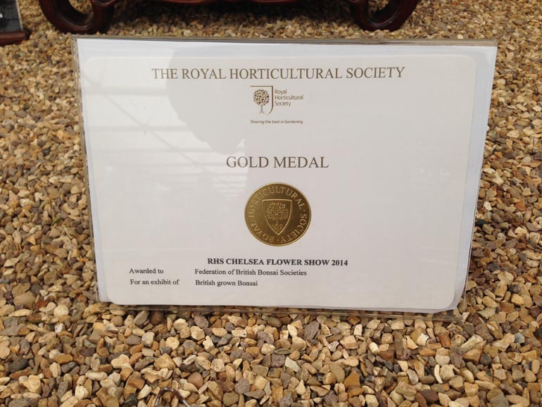 The Federation of British Bonsai Societies have won a gold medal at the prestigious RHS Chelsea Flower Show. Well done Reg and congratulations