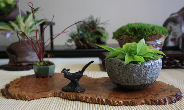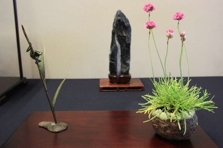 The event was a fabulous collection of some very fine examples of Kusamono, Kokedama, Shitakusa, Suiseki, scrolls, miniature bronzes and so much more that it was hard at times to know what to look at, let alone try to photograph.