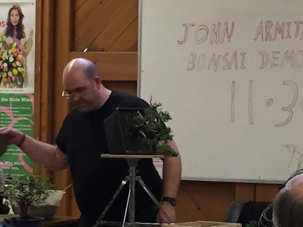 John Armitage was also doing a demo at the show and initially was styling a shohin Juniper and then went on to work on a Cork Bark elm and his demonstrations are always worth attending due to the level of explanation and detail provided throughout.