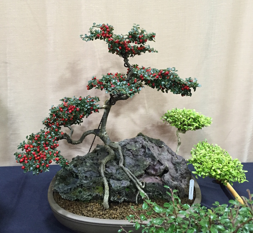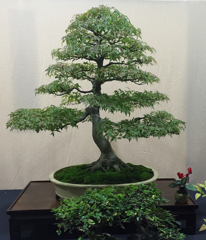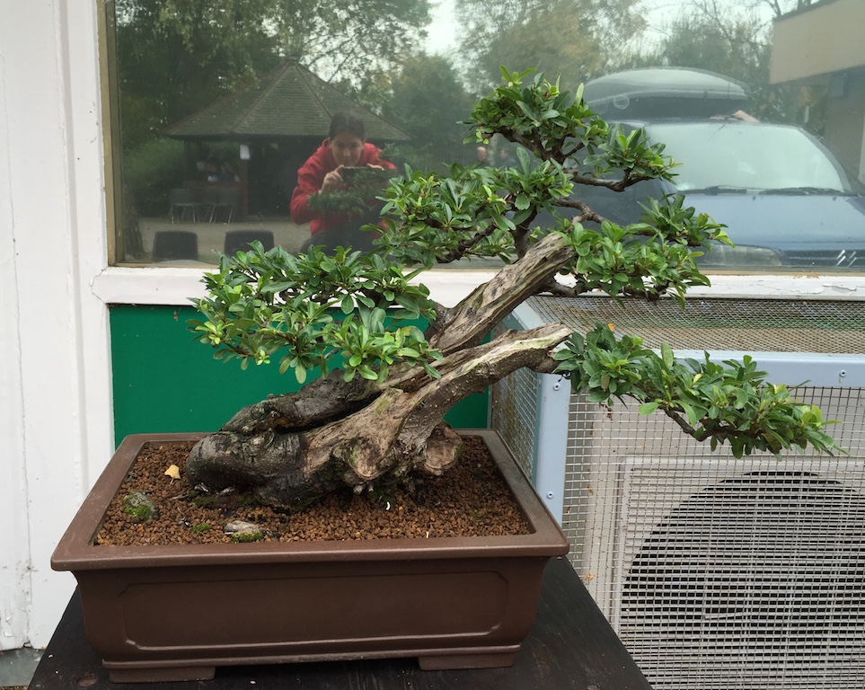 The Heathrow Bonsai Show was a great success, and some of the broadleaved bonsai trees on display were shown to their full advantage with the onset of autumn colour and even those that had yet to turn were still impressive as shown from the sample of broadleaved bonsai trees on display below. The range of styles was excellent with groups, cascades, semi cascades, formal and informal uprights to name a few styles.