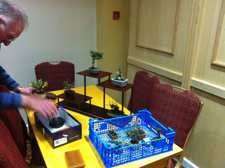 Last minute plant selection – what goes with what; bringing balance to a display can be tricky at the best of times. Getting a bit of advice from others can help. Having a good selection of stands to choose from can also make, or break a display. I always find a good cup of tea helps, these are all things you can find at one of our monthly club meetings.