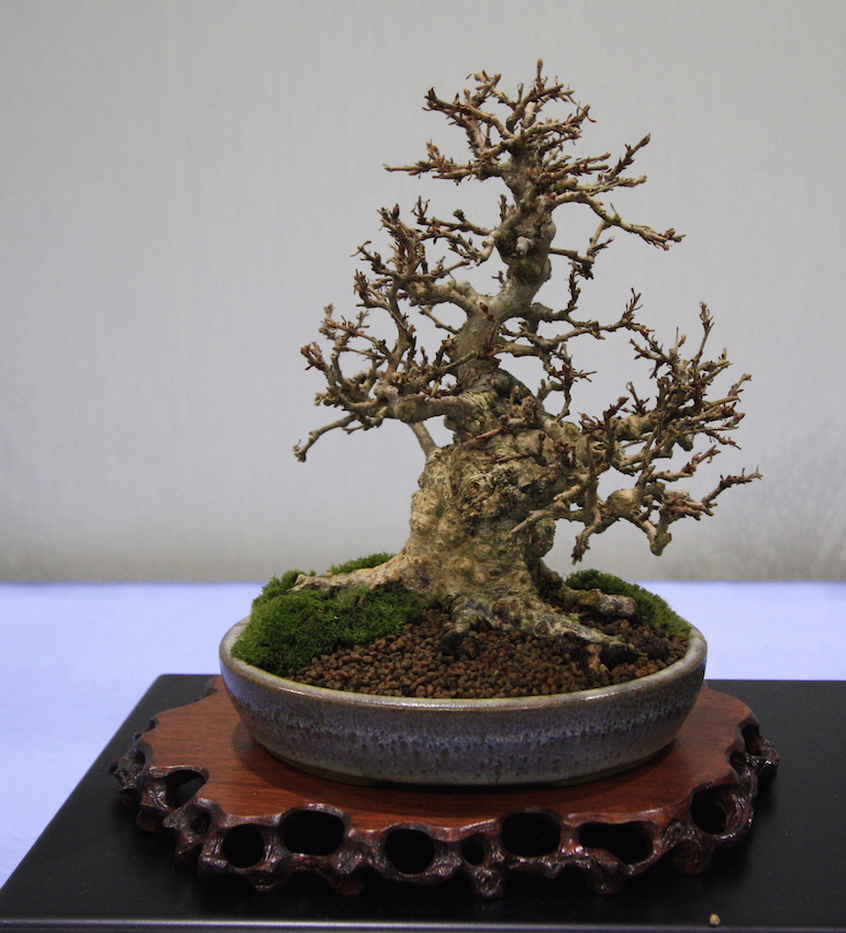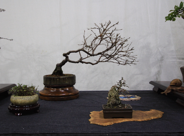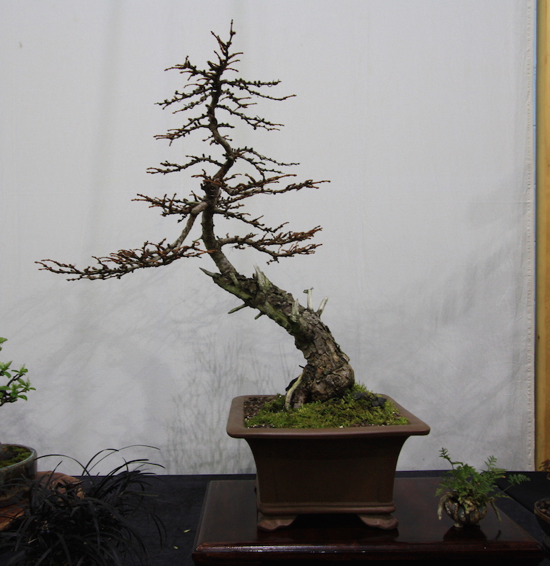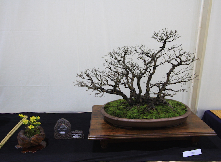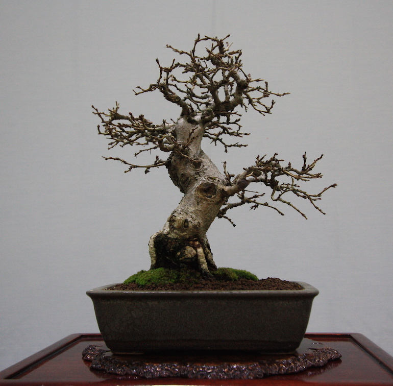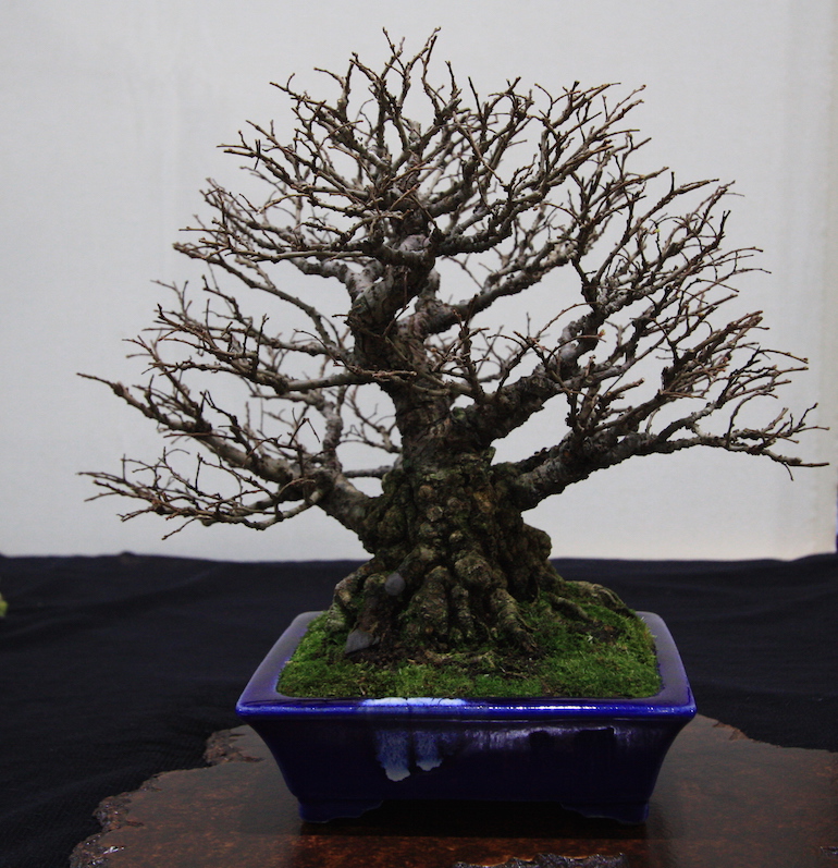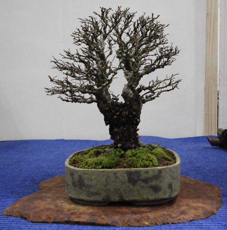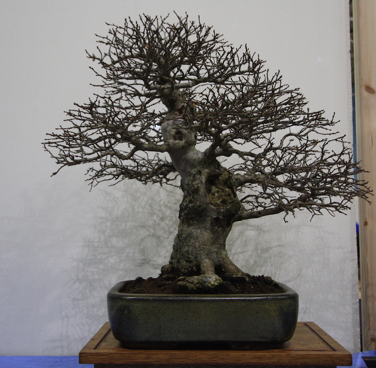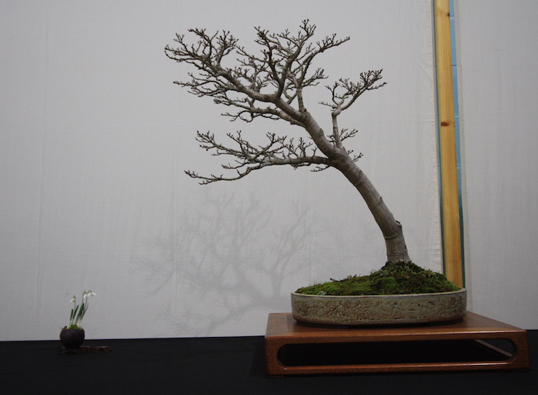 Winter image has to be one of the best times of year to view and display bonsai when you can see the fabulous tracery, silhouette and all the structural attributes of a tree in full. The deciduous bonsai on display lived up to expectation too as you can see from the Best Deciduous of Mark and Ritta Copper in addition to many of the other deciduous species on display throughout the show this year. It certainly was a good year for winter image displays and trees.The range of species was good to from Elms through to Viburnums as shown in the photographs below where a few of the trees on display have been collated for you to browse through for the winter image specialty.