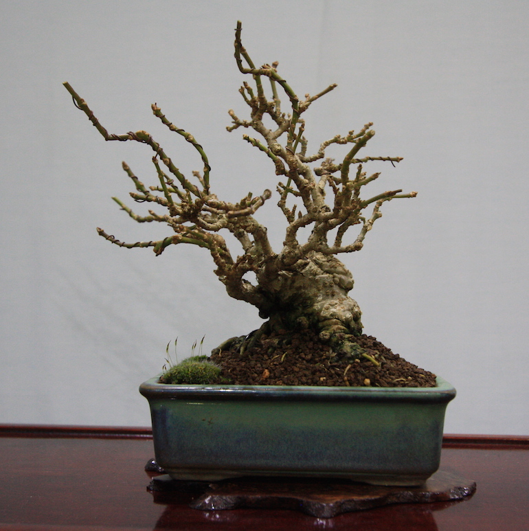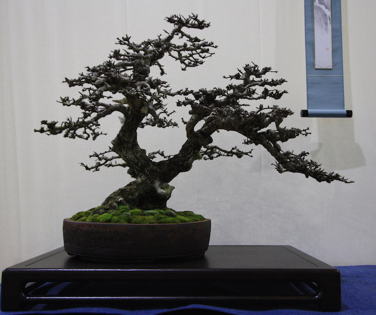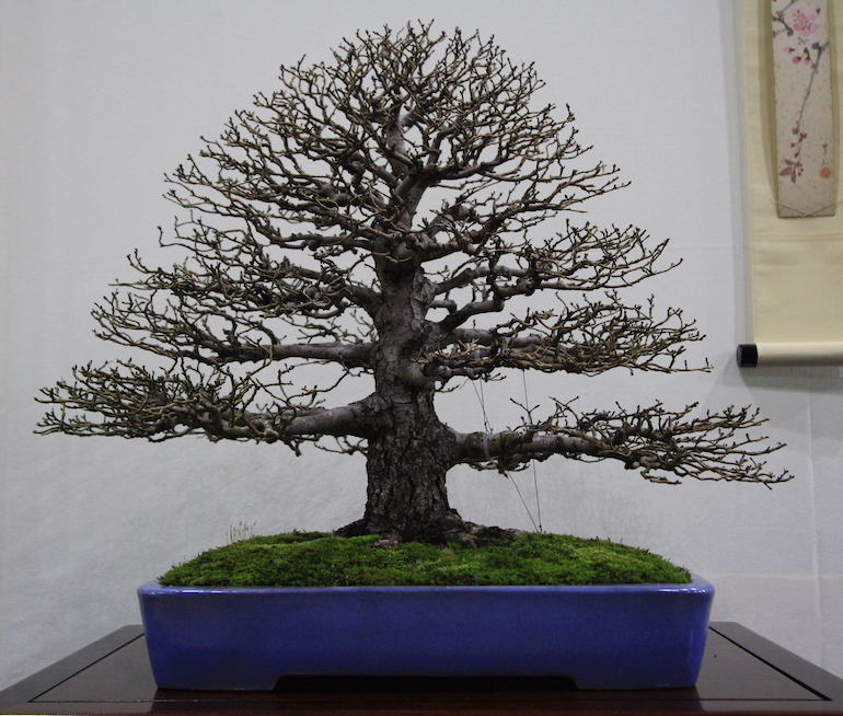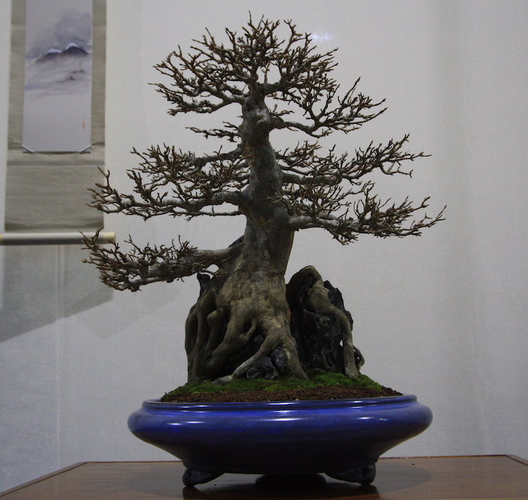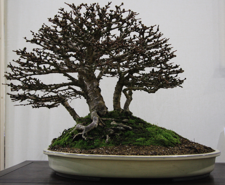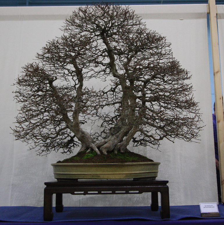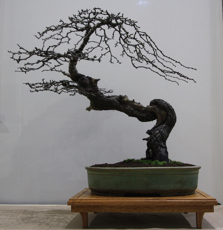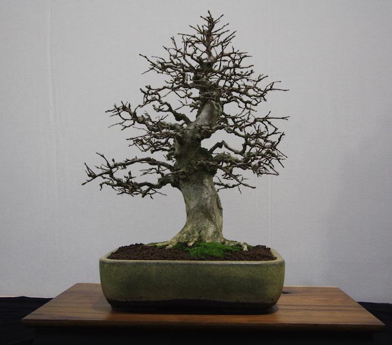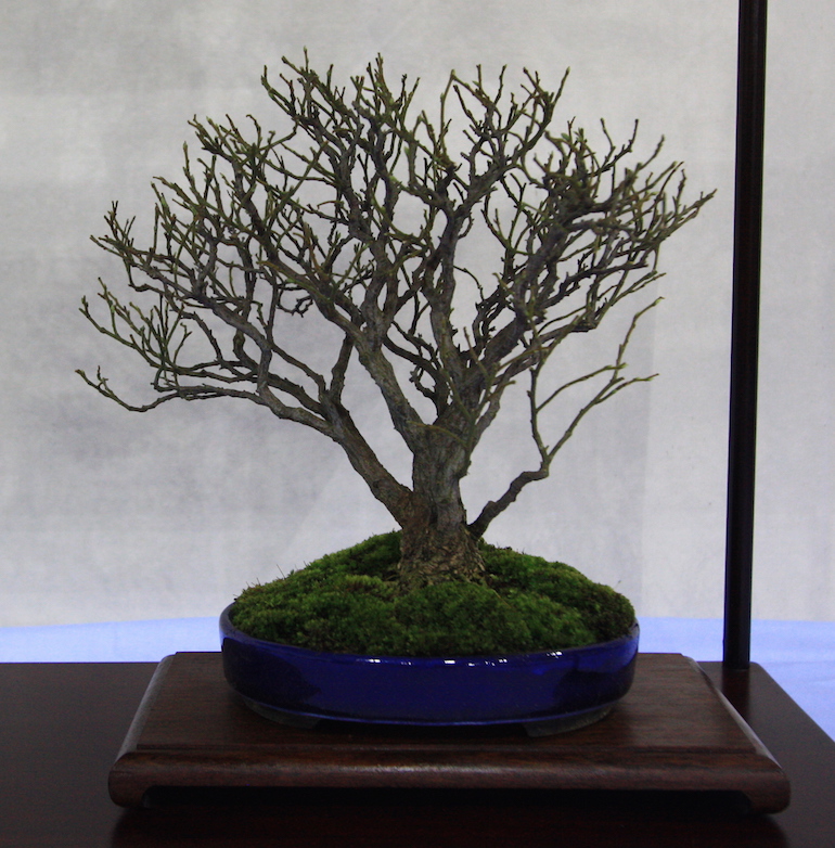 Winter image has to be one of the best times of year to view and display bonsai when you can see the fabulous tracery, silhouette and all the structural attributes of a tree in full. The deciduous bonsai on display lived up to expectation too as you can see from the Best Deciduous of Mark and Ritta Copper in addition to many of the other deciduous species on display throughout the show this year. It certainly was a good year for winter image displays and trees.The range of species was good to from Elms through to Viburnums as shown in the photographs below where a few of the trees on display have been collated for you to browse through for the winter image specialty.