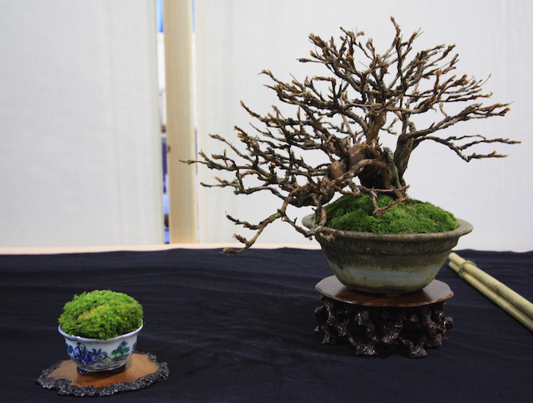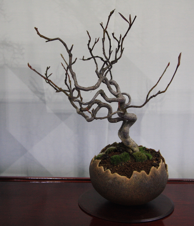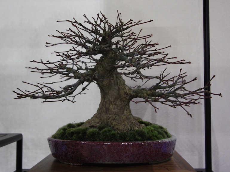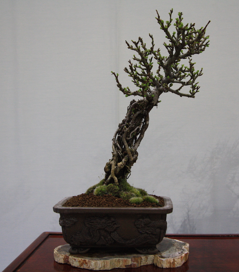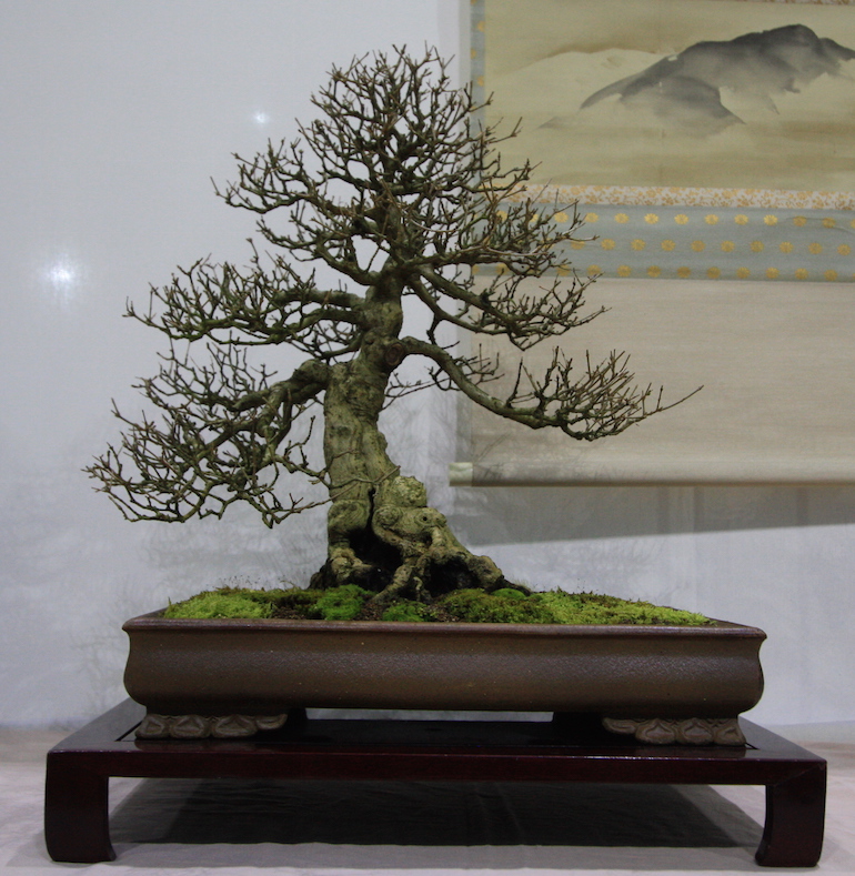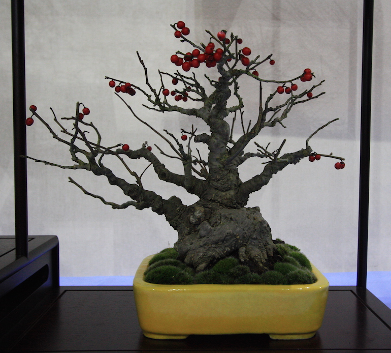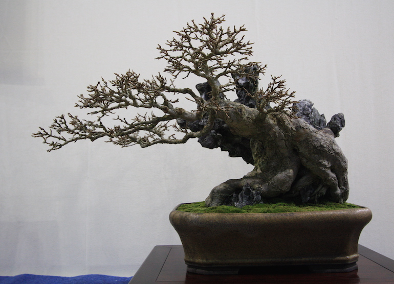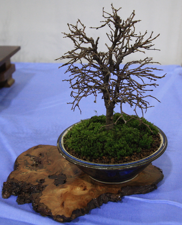 Winter image has to be one of the best times of year to view and display bonsai when you can see the fabulous tracery, silhouette and all the structural attributes of a tree in full. The deciduous bonsai on display lived up to expectation too as you can see from the Best Deciduous of Mark and Ritta Copper in addition to many of the other deciduous species on display throughout the show this year. It certainly was a good year for winter image displays and trees.The range of species was good to from Elms through to Viburnums as shown in the photographs below where a few of the trees on display have been collated for you to browse through for the winter image specialty.