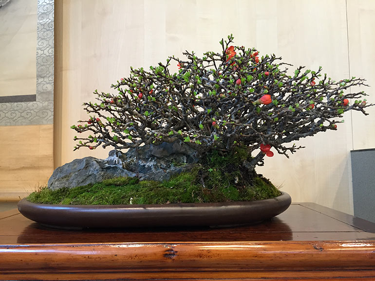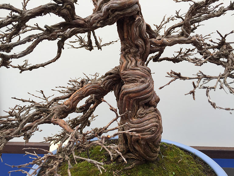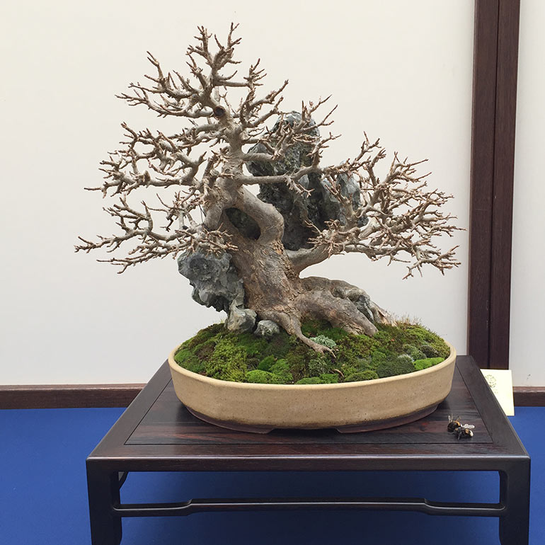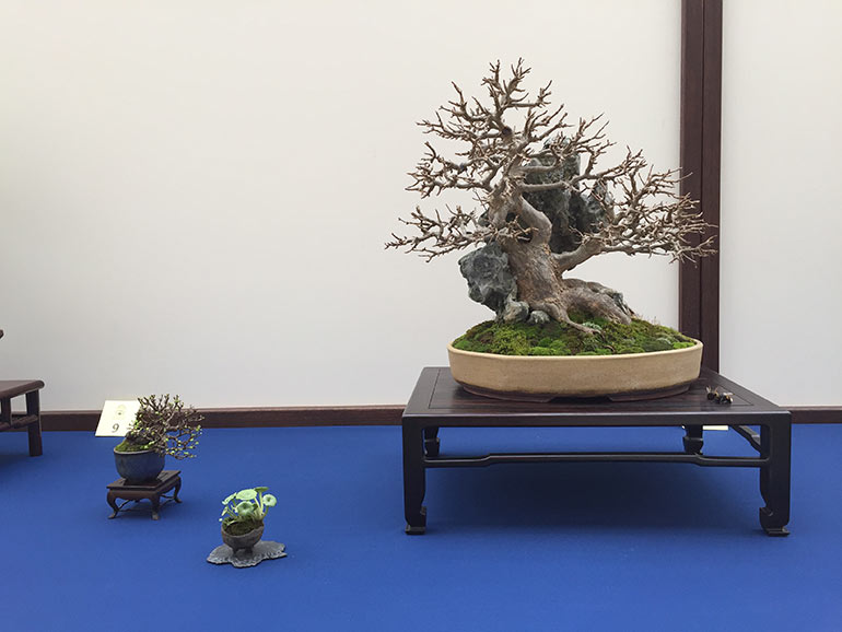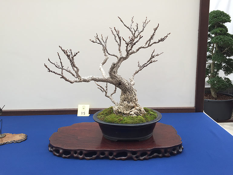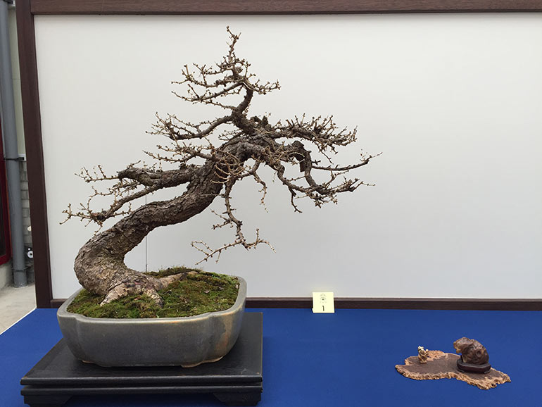 This show was contained within the Lodders open day, an opportunity for members Sho Ryu Kai group to display their trees. This happens usually twice a year, once in late winter/early spring and the later in the autumn. The group has some very knowledagble members with some beautiful specimens of all sizes of tree. The award winning tree, a Japanese White Beech is particularly striking, and an aged Potentilla with its eye catching twisted bark certainly attracts the attention.