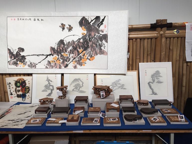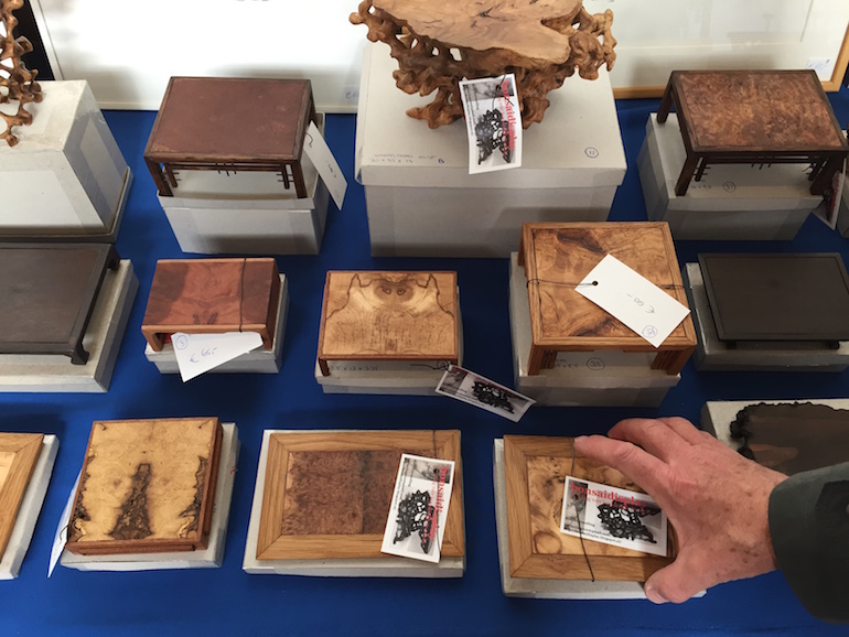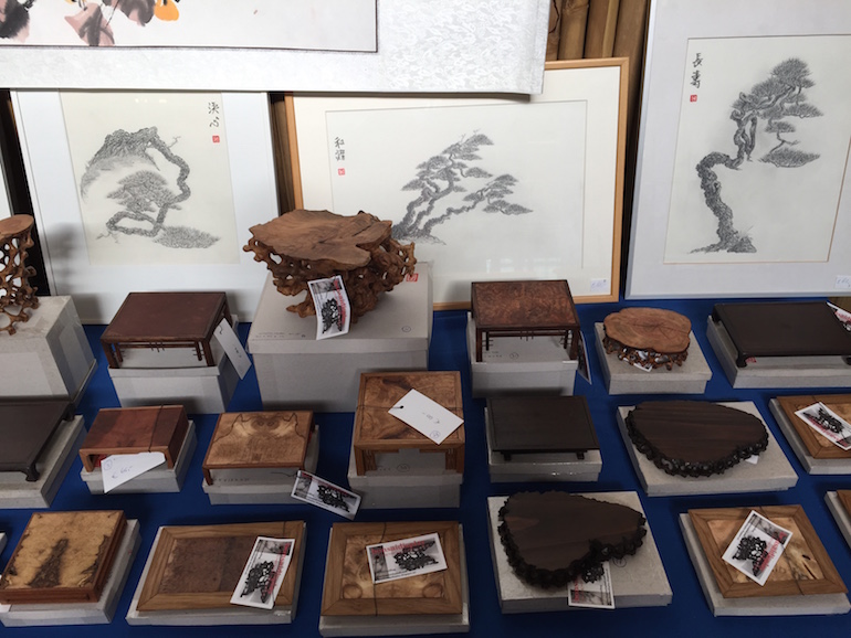 In addition to being incredibly skilled on the bonsai front creating and maintaining so many beautiful trees that were on display, Daan also makes his own bonsai display stands under the Madakobo Studio name, and showed us examples of the inlays he puts into the display tables to match the pot colour or a feature on the trees and he had a few on sale at the open weekend.