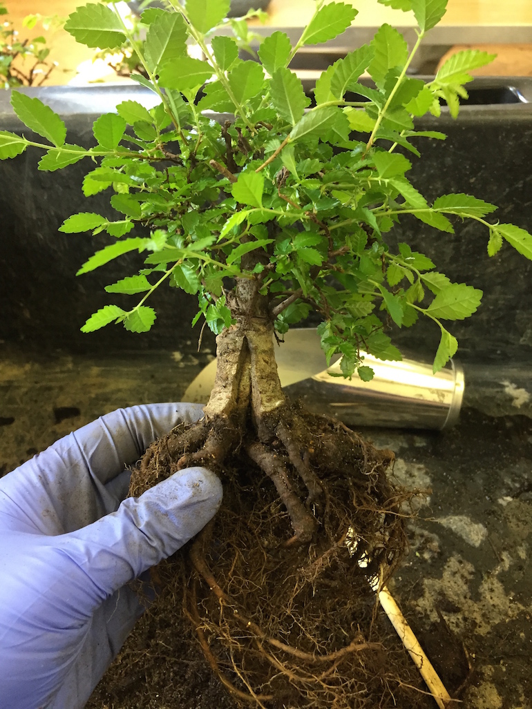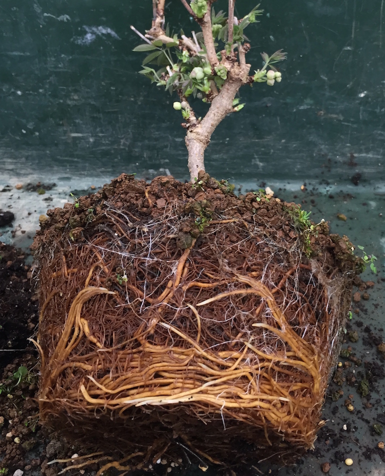 For any trees that you are not repotting still remove the top surface and re-top dress to remove any crusting on the surface to improve airflow and drainage down through the soil. Plus clean the pots of the trees if they have got green algae forming on them.