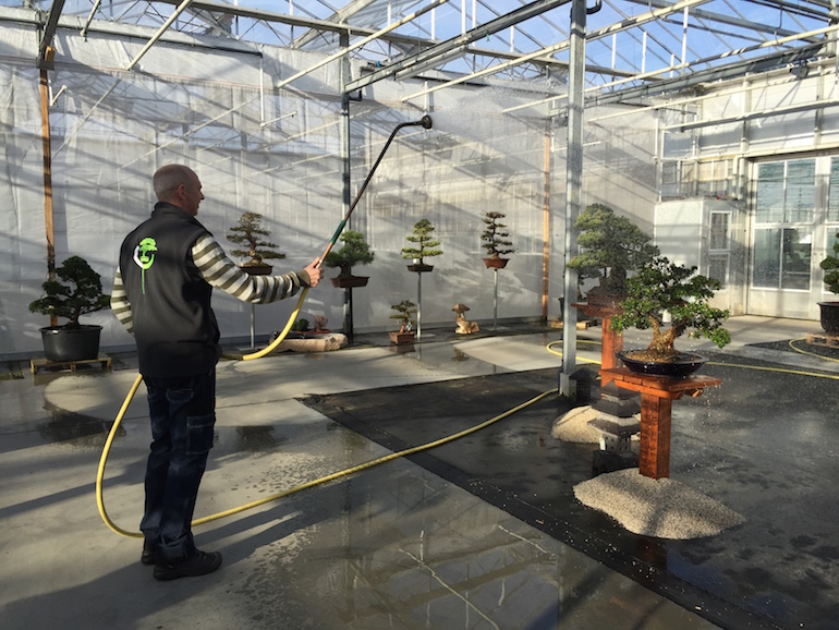Subject to how you display your trees, if you are looking to bring your trees out later in Spring from their winter protection it is an ideal time to clean off your display areas or benches and disinfect them as well as re-treat with a wood preservative or relevant treatment for the material so they show your trees off once they are ready to come out.