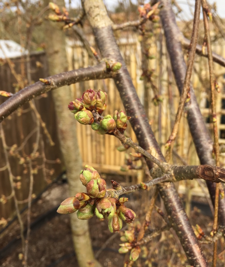 Remove unwanted branches and look for dead branches now that you can see the new buds swelling and clean out any dead branches before the leaves fully flush. Prune back any branches that are too long to a suitable live bud pointing in the right direction. Seal any large wounds with cut paste.
