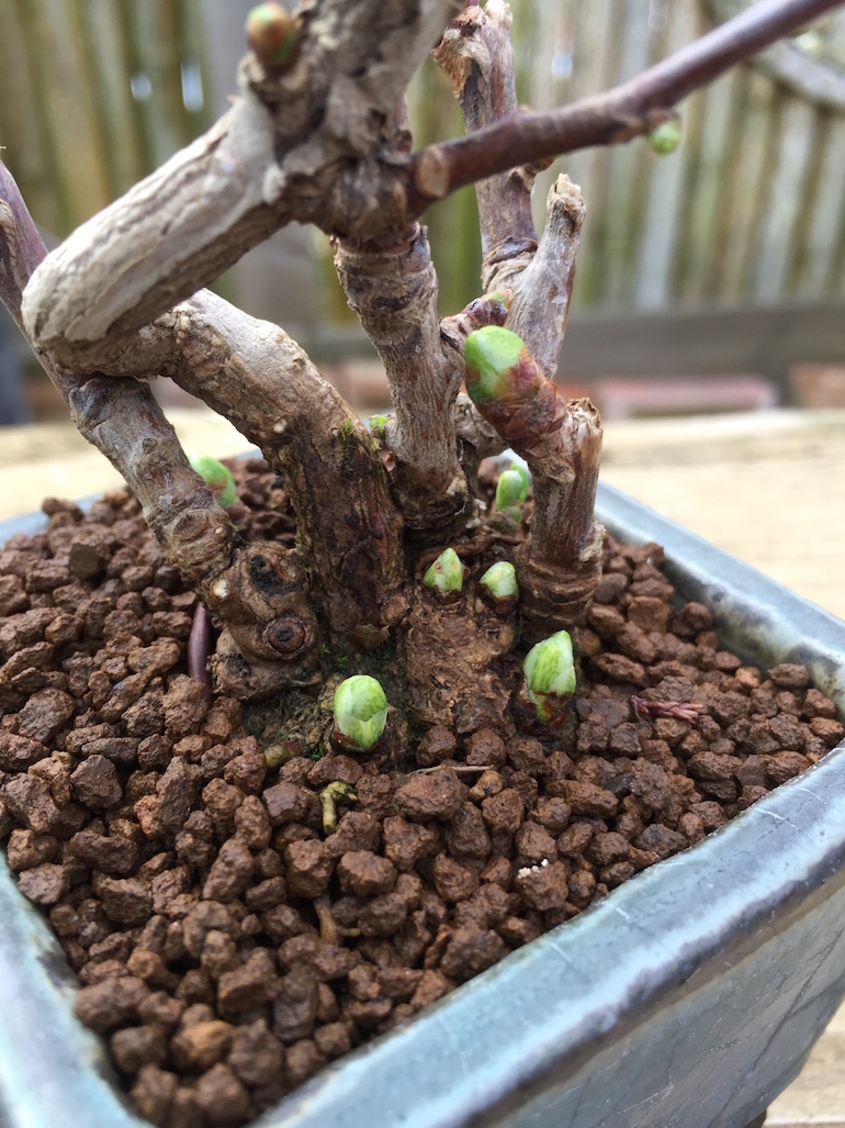 In the UK it has been a fairly dry winter so continue to check your trees daily and water as required but start to increase your watering with the buds now pushing and leaves opening. Water in the mornings ideally to avoid the colder temperatures at night. Spray any repotted trees to ensure they do not dry out.