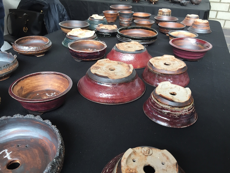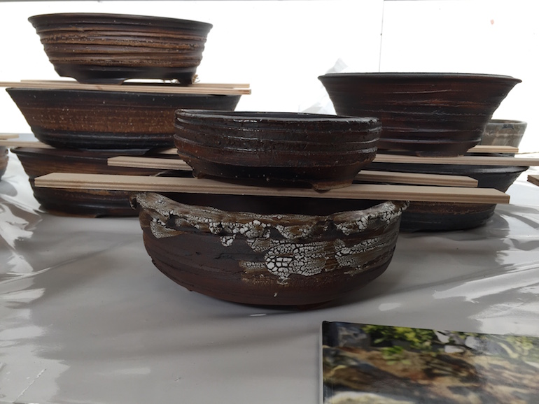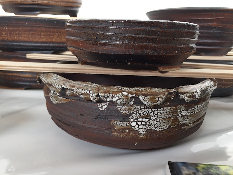 Rene Lecocq is from Belgium and is well known for his stunning bonsai pots, which apparently he began to create when he started the hobby for bonsai and his love of bonsai and inspiration come through in his pots. Here are a few images of his pots on sale at the Lodder Bonsai Open Weekend.
