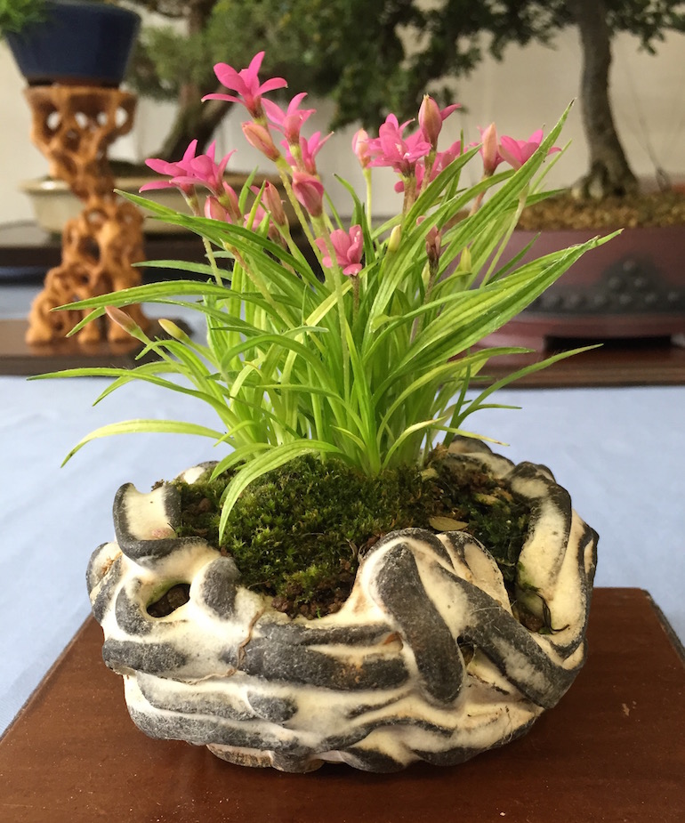 There were a good range of accents on display at the Roots Bonsai Show this weekend near Newbury, a wide range of species and good to see so many in flower adding a touch of colour to the bonsai displays.