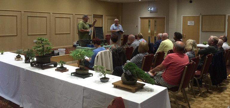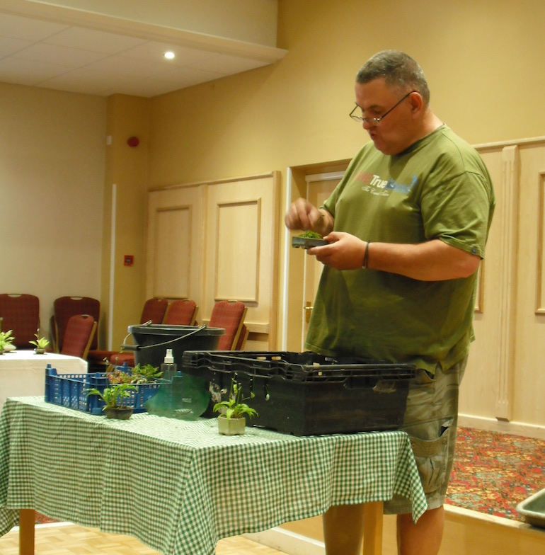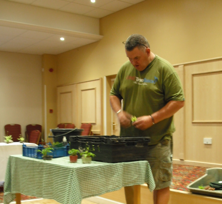 Throughout the evening Steve kept everyone entertained with his humour and one of his memorable quotes of the day was “Dry at Ghandis flip flop” …. and this was in reference to Gordon Duffett pots as he tends to find that his bonsai in these pots dry out more quickly in the sunshine than in other potters pots but cannot explain why.