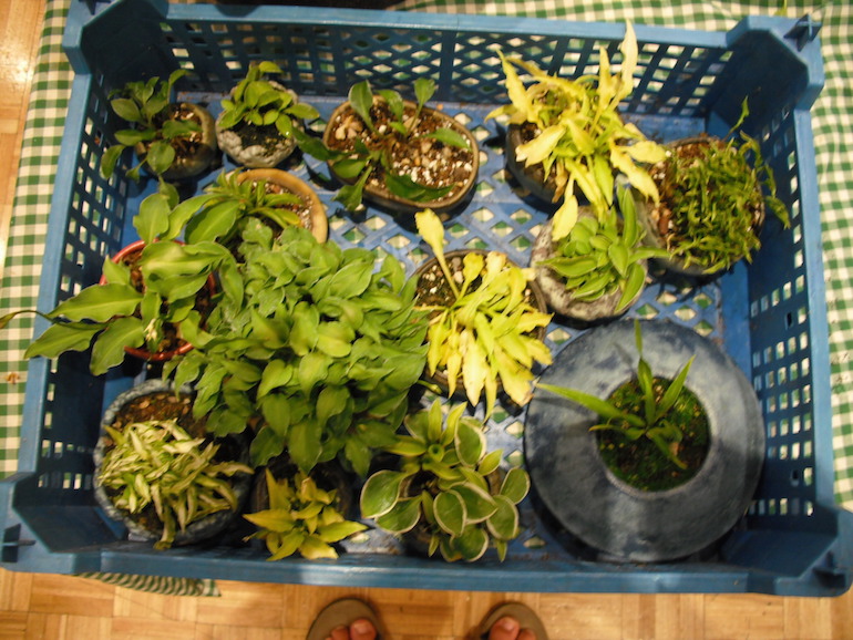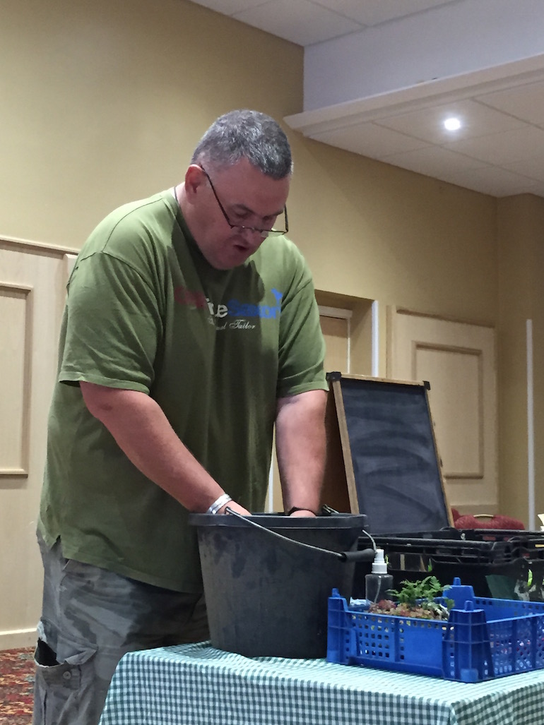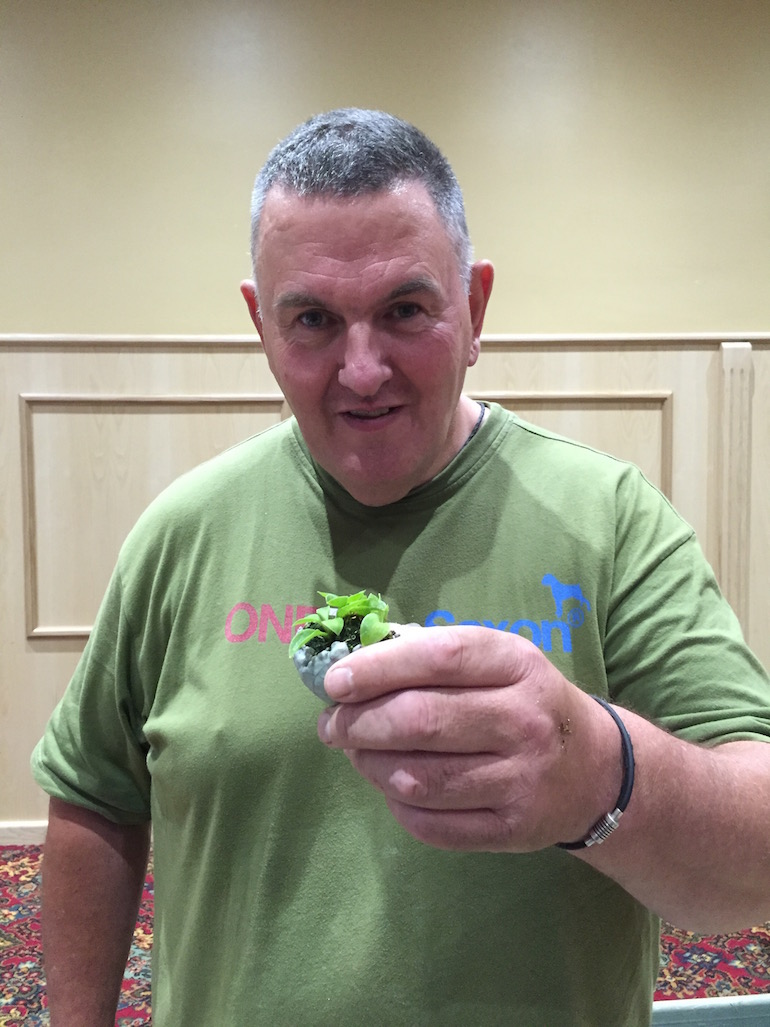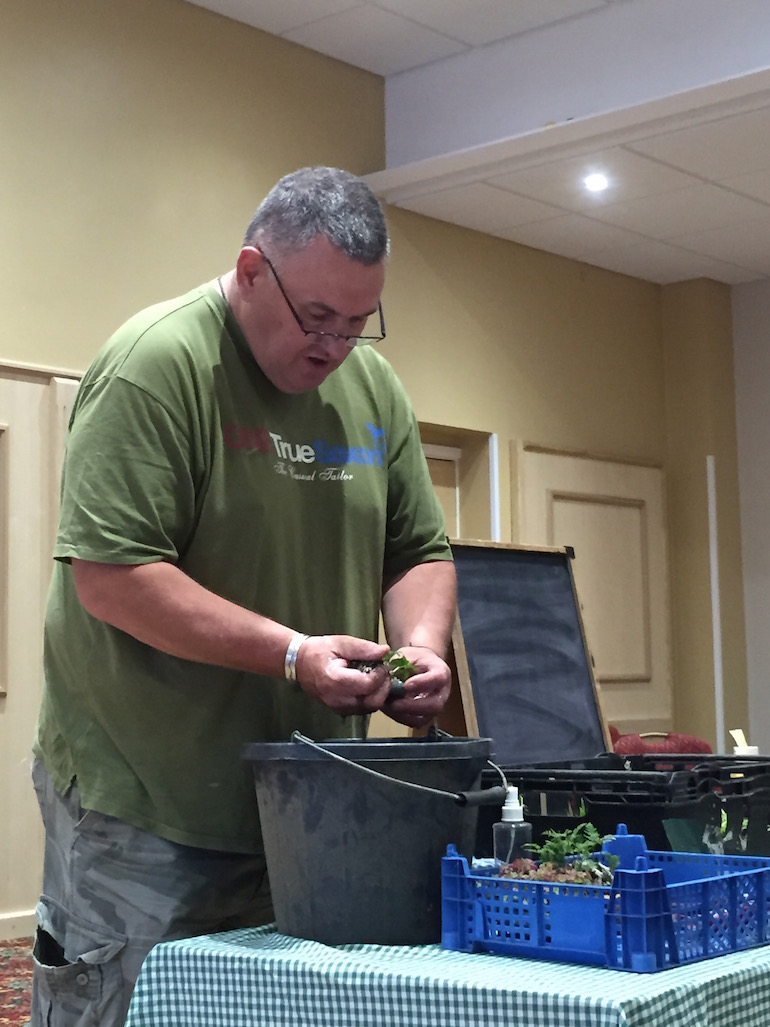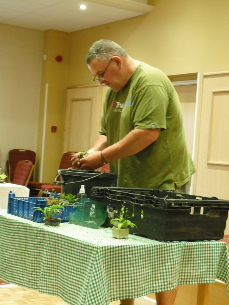 This is a great method as it is hard to repot such small plants with dry soil and by using already pre-wetted soil this works a treat. Steve showed us how he does his repotting by having a bucket of water on hand with any left over soil in the bottom of the bucket of water and even referenced to it containing the washings out of his daughters aquarium which accounted for the pond like smell.