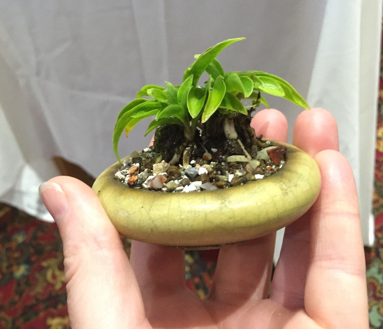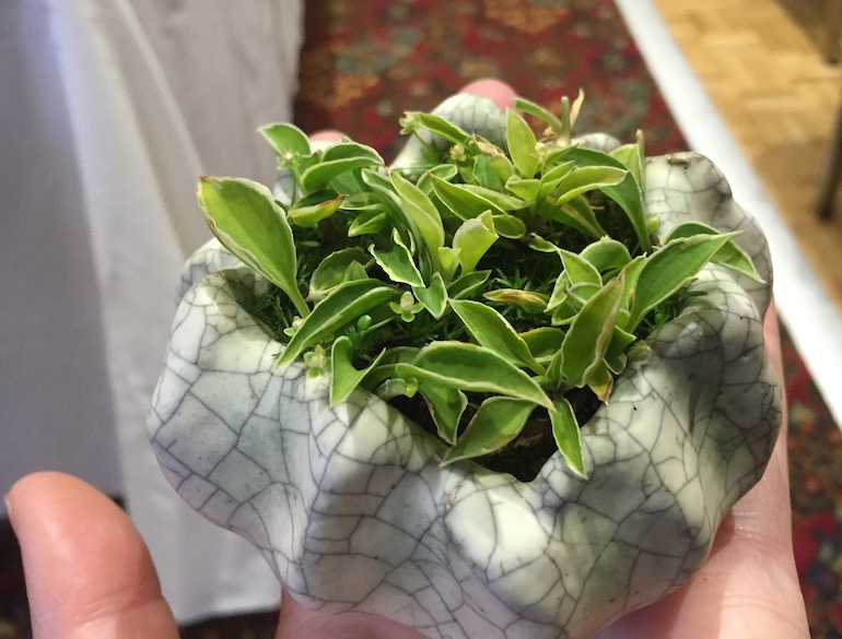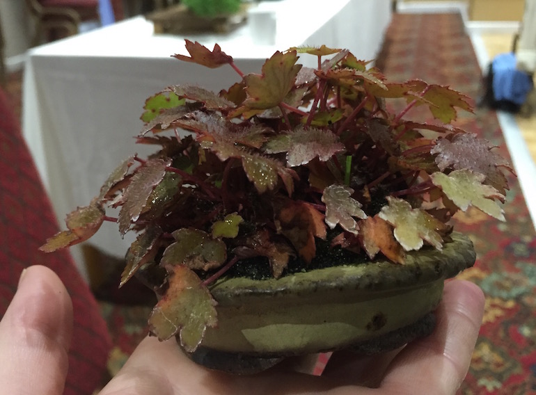 You will find ‘Mouse Ears’ is a popular species but these have large leaves still and many are sold with this name and are perhaps derivatives of the species. Small leaf forms like ‘Tiny Tears’ & ‘Tom Thumb’ are the best for accents in proportion to most bonsai trees but it does depend on the size of the bonsai tree and ensuring you select the right size and type of the accent plant to accompany it.