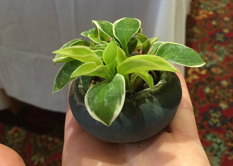 Steve has enjoyed bonsai as a hobby for a long time now; and it was only after around four or five years of being in the hobby that in he noticed accents and more specifically hostas as having good potential, and he has since then been looking for smaller and smaller plants to use as accents.