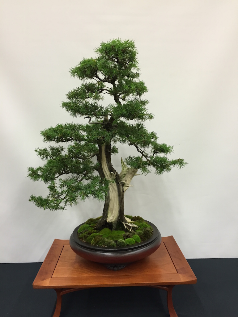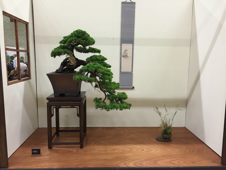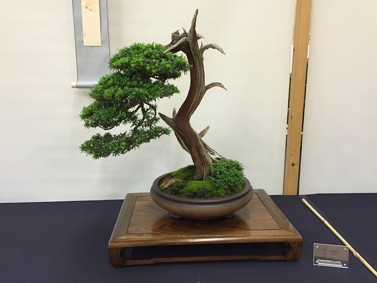 What a range of bonsai trees on display at the Bonsai World 2015 show this year at the K2 Centre, from all species, to all shapes and sizes and presented in so many different ways with some very inspiring designs of trees, pots and stands. It was hard to spend the time viewing individually all the trees on display, but I tried to get to see most of them and some really stood out and were bonsai trees I admired greatly.