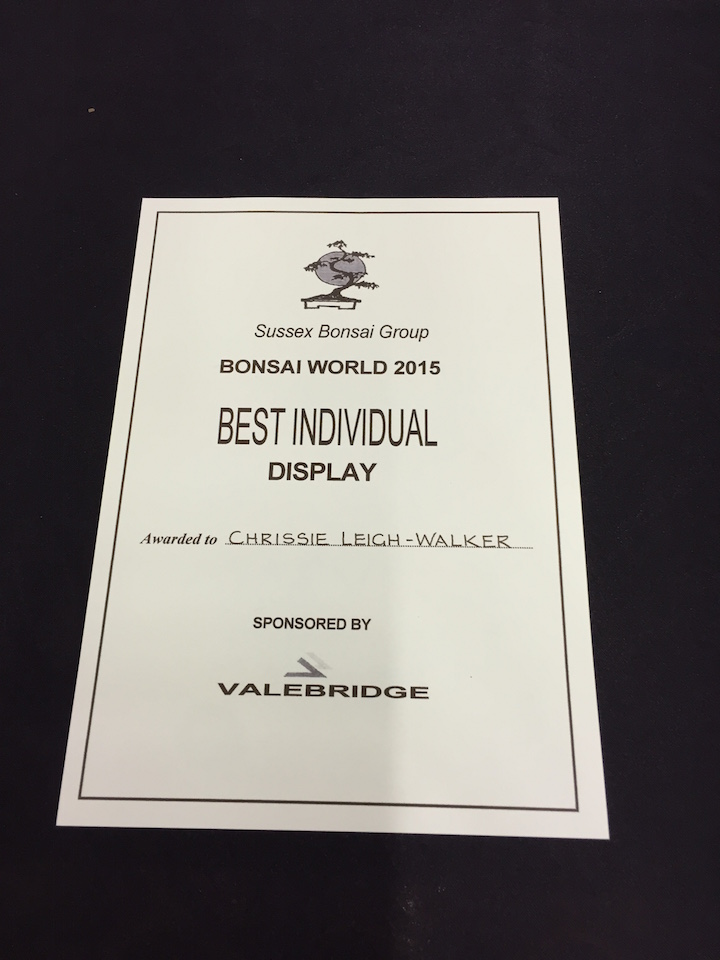 Here are the winners from Bonsai World 2015 held at the K2 Centre, Crawley, West Sussex. Congratulations to all those who won an award plus all those who put displays on at the event as it was great to see some wonderful displays of bonsai.