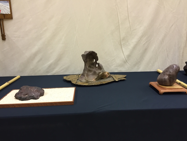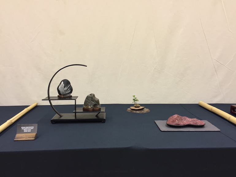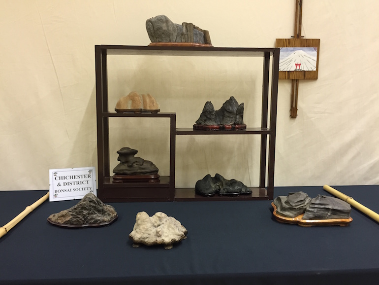 The British Suiseki Club and other clubs and societies put on a marvellous display of suiseki at Bonsai World at the K2 Centre this year. It was an impressive display of viewing stones of all colours, shapes and sizes.