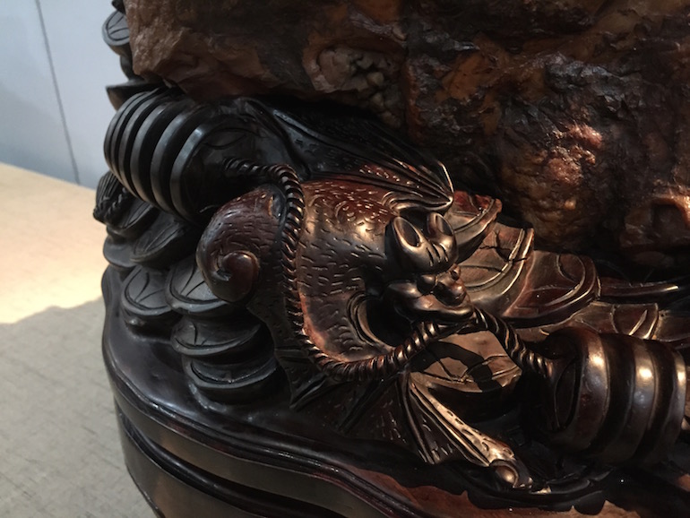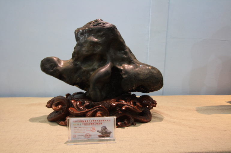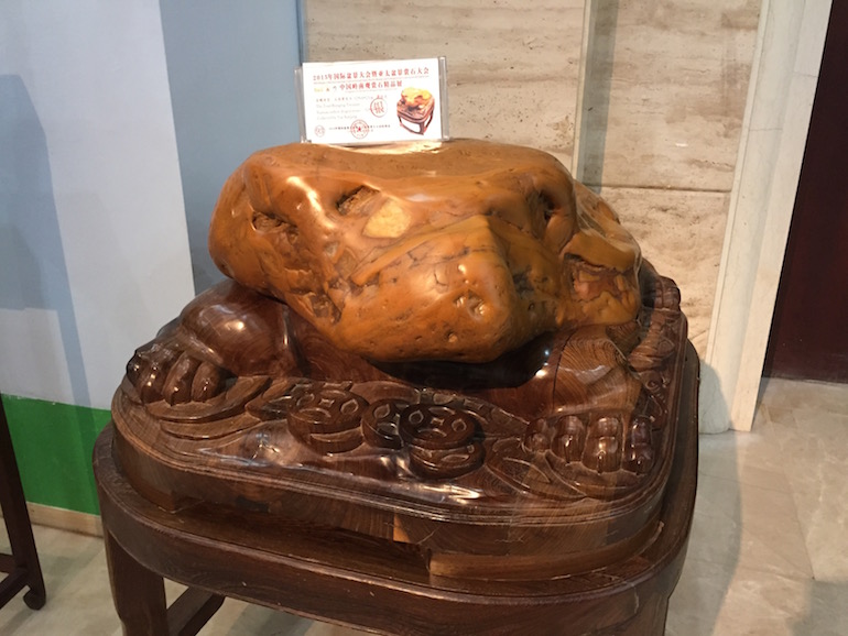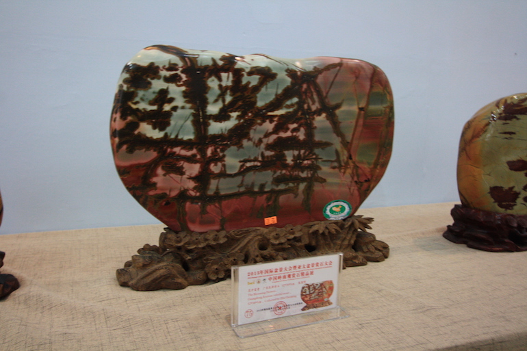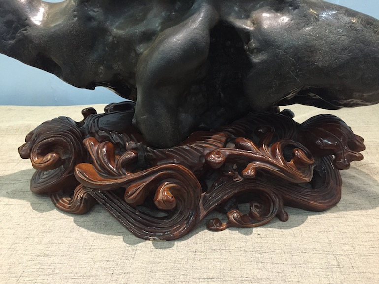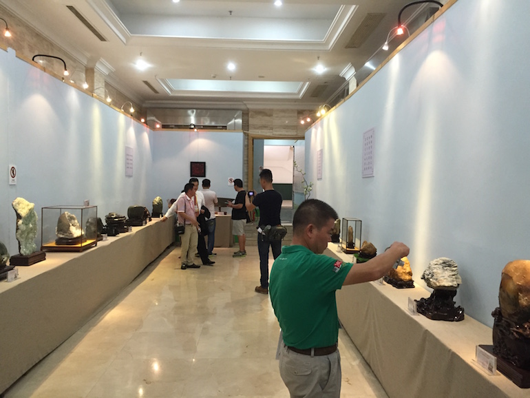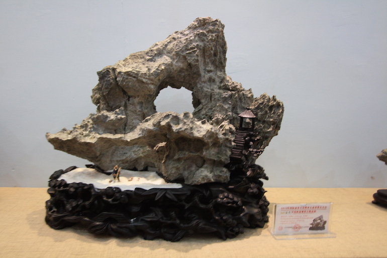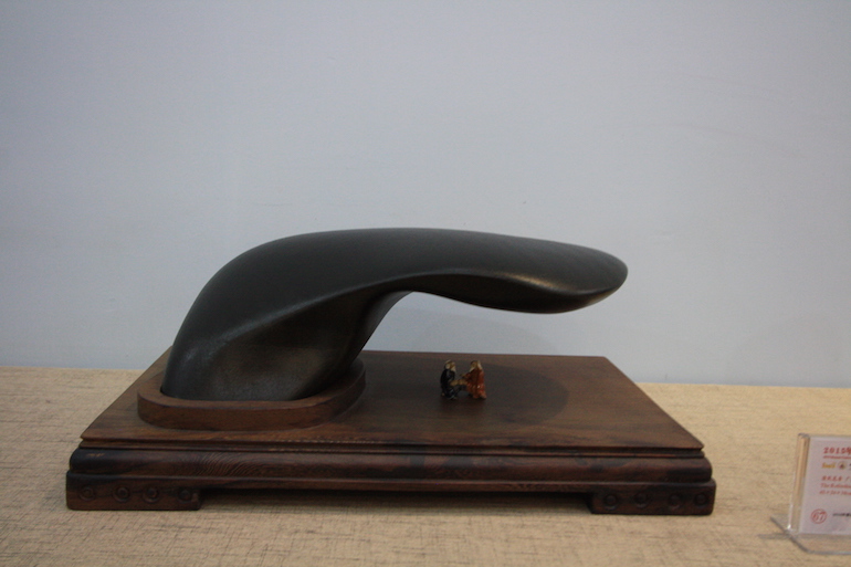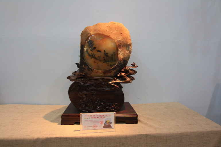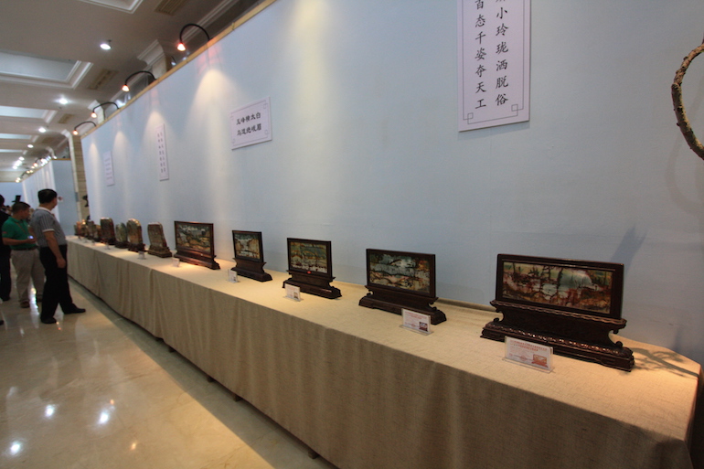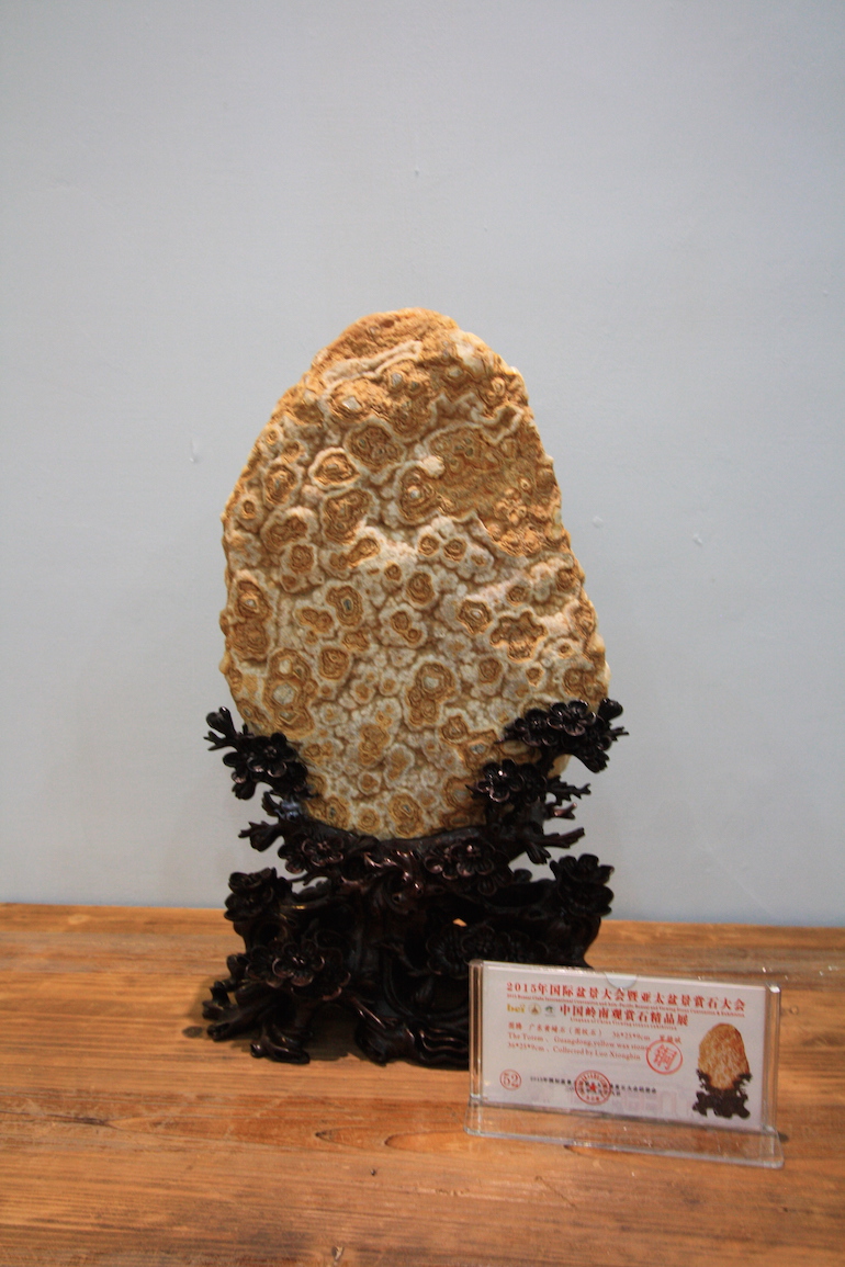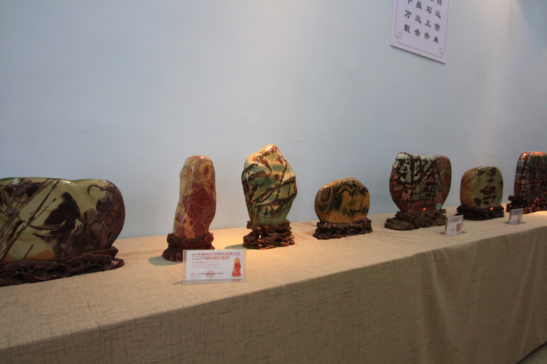 It was a beautiful exhibition in a very clean and crisp setting which set the viewing stones off so well that you could see all the colours and really get to understand the visual interpretation of what some of the stones represented. The wood carving stands underneath and surrounding some of the viewing stones was also superb.