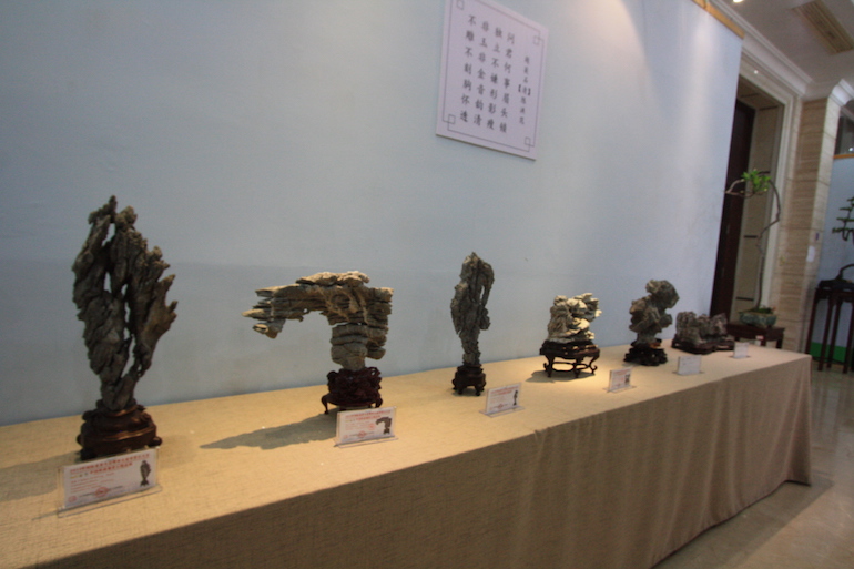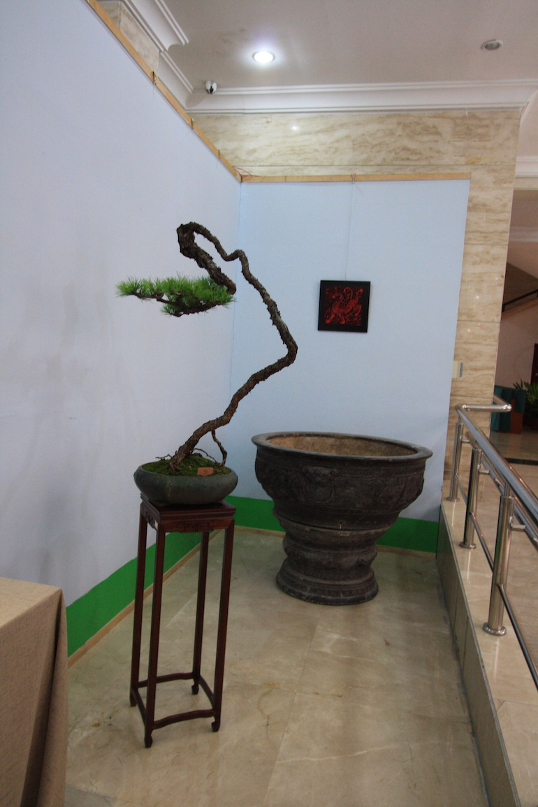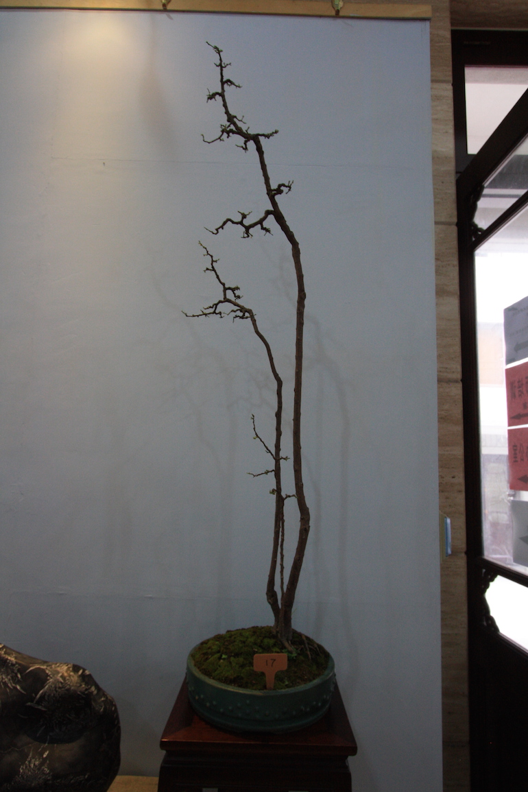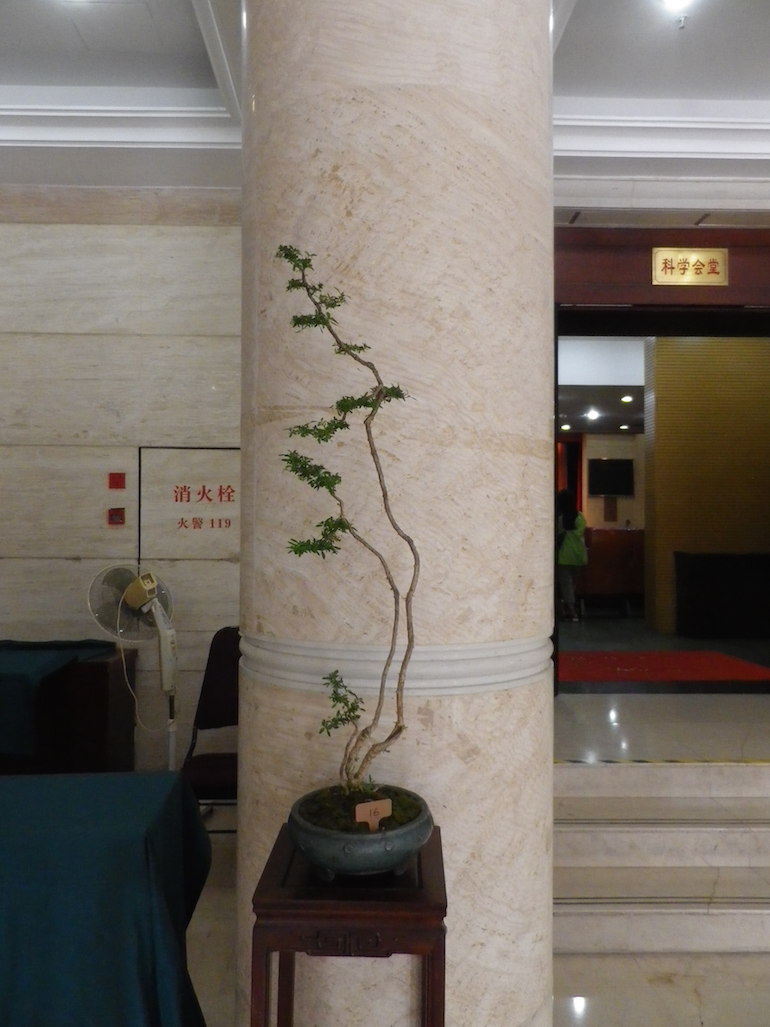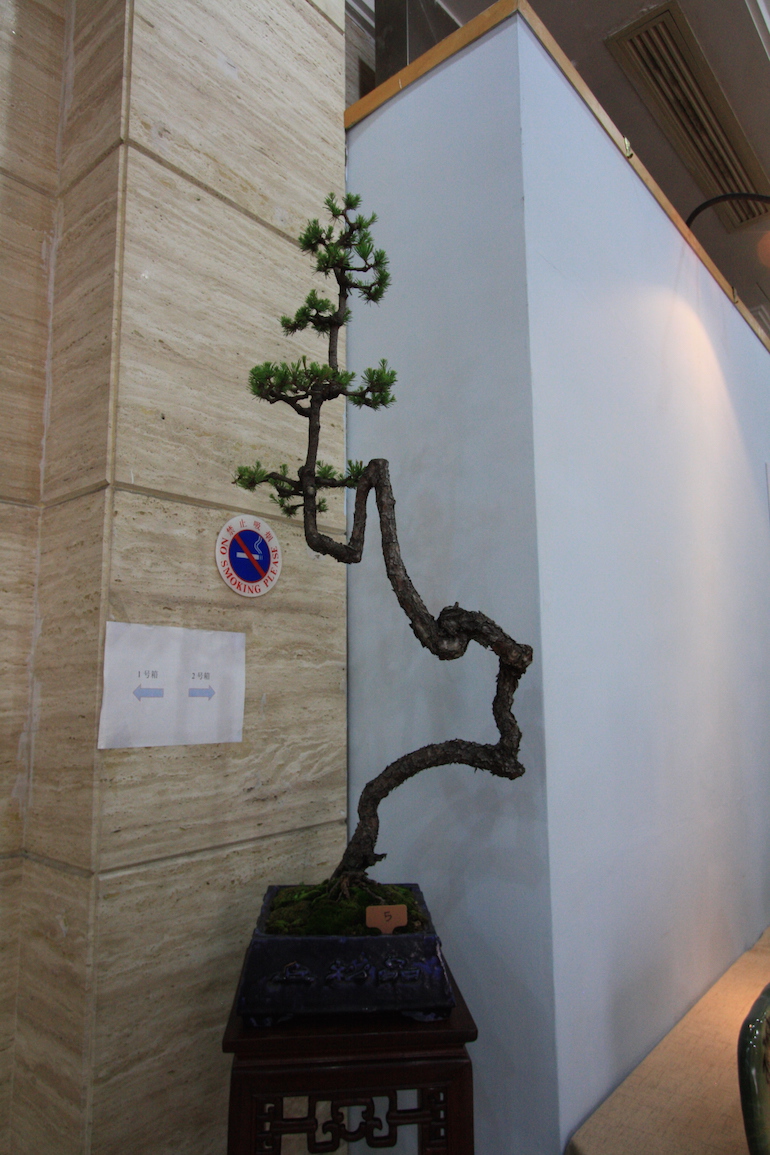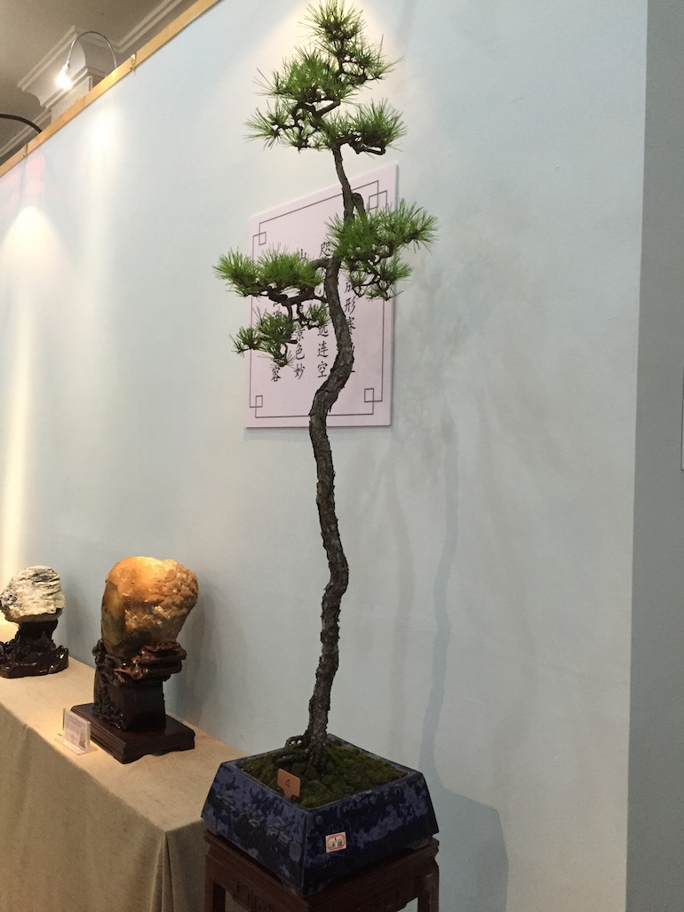 As part of the viewing stone exhibition there were Bonsai positioned to enhance the viewing stones displayed and this style is very traditionally Chinese in design.